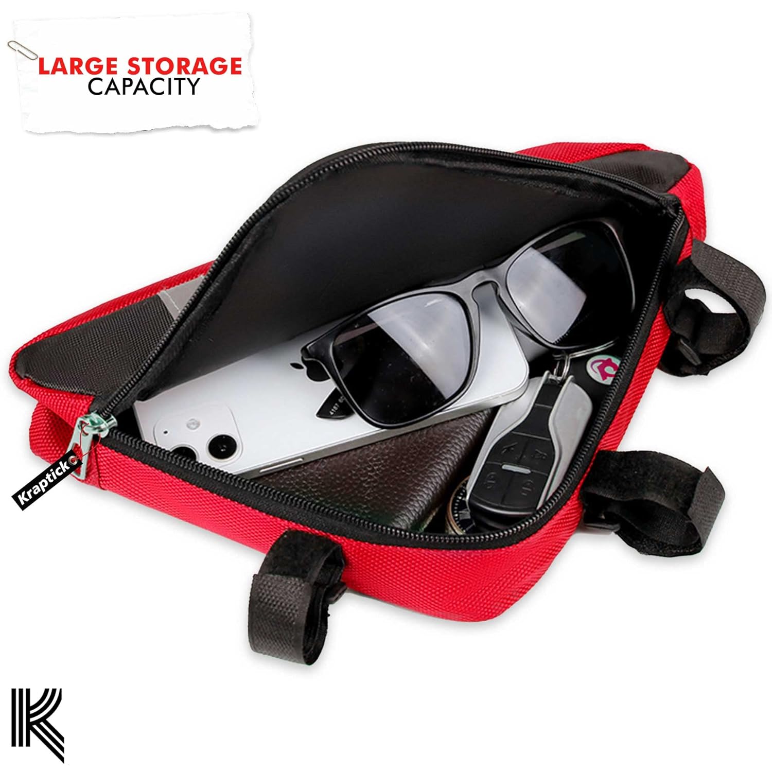 Introducing the ‘KRAPTICK’ Triangle Bicycle Bag with a 360-degree Rotatable Mobile Phone Holder – a cyclist’s dream accessory that seamlessly blends innovation, practicality, and safety into one sleek package.