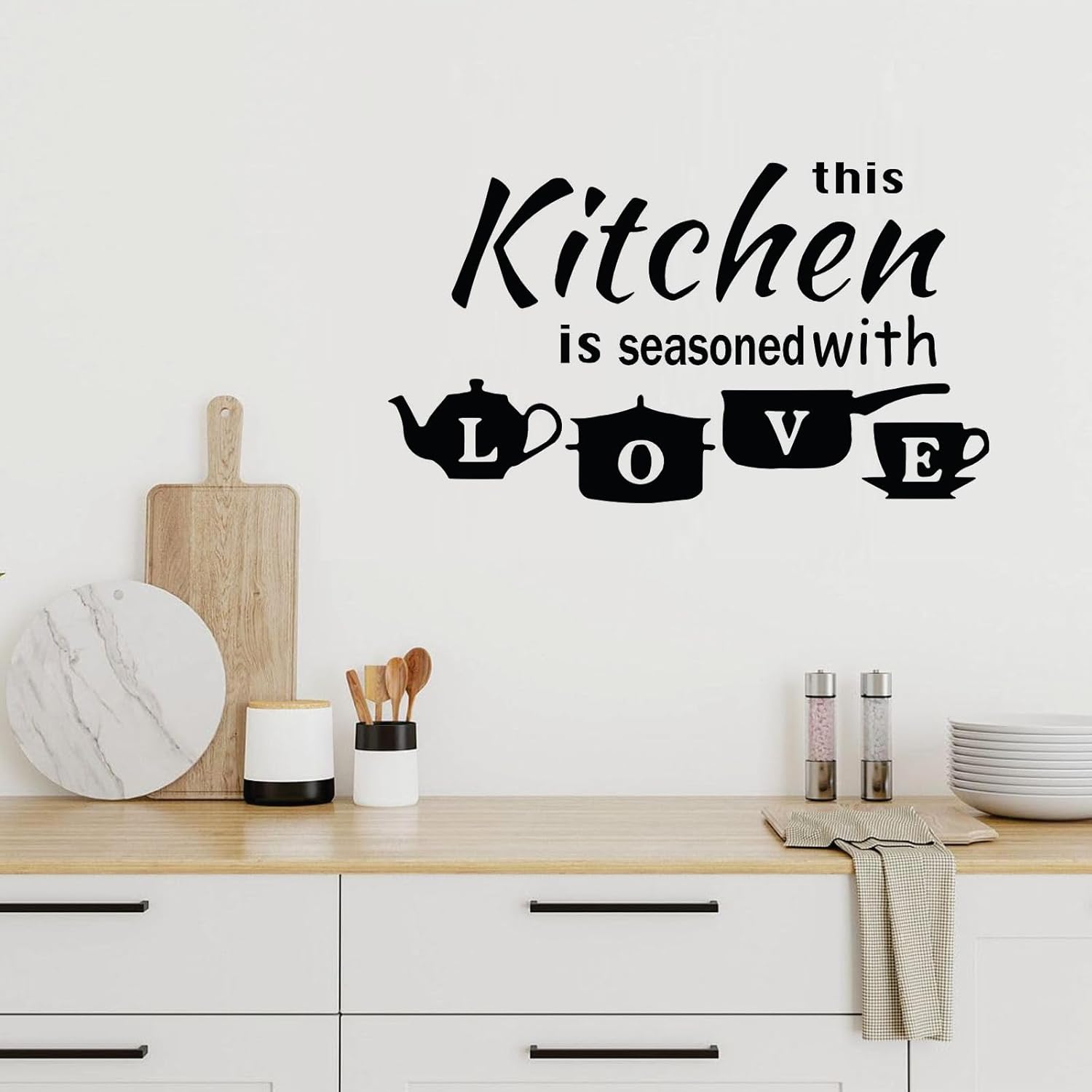 KREEPO This Kitchen is Seasoned with Love- Vinyl Wall Sticker Art for Cafe, Restaurants, Kitchen, Black
