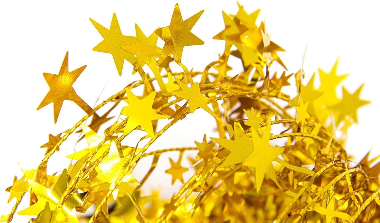 KROGER -2 Roll Sparkly Gold Star Tinsel Garlands with Wire for Christmas Tree Home Wedding Birthday Party Festive Ornament Decoration 25 Ft X 2 Gold