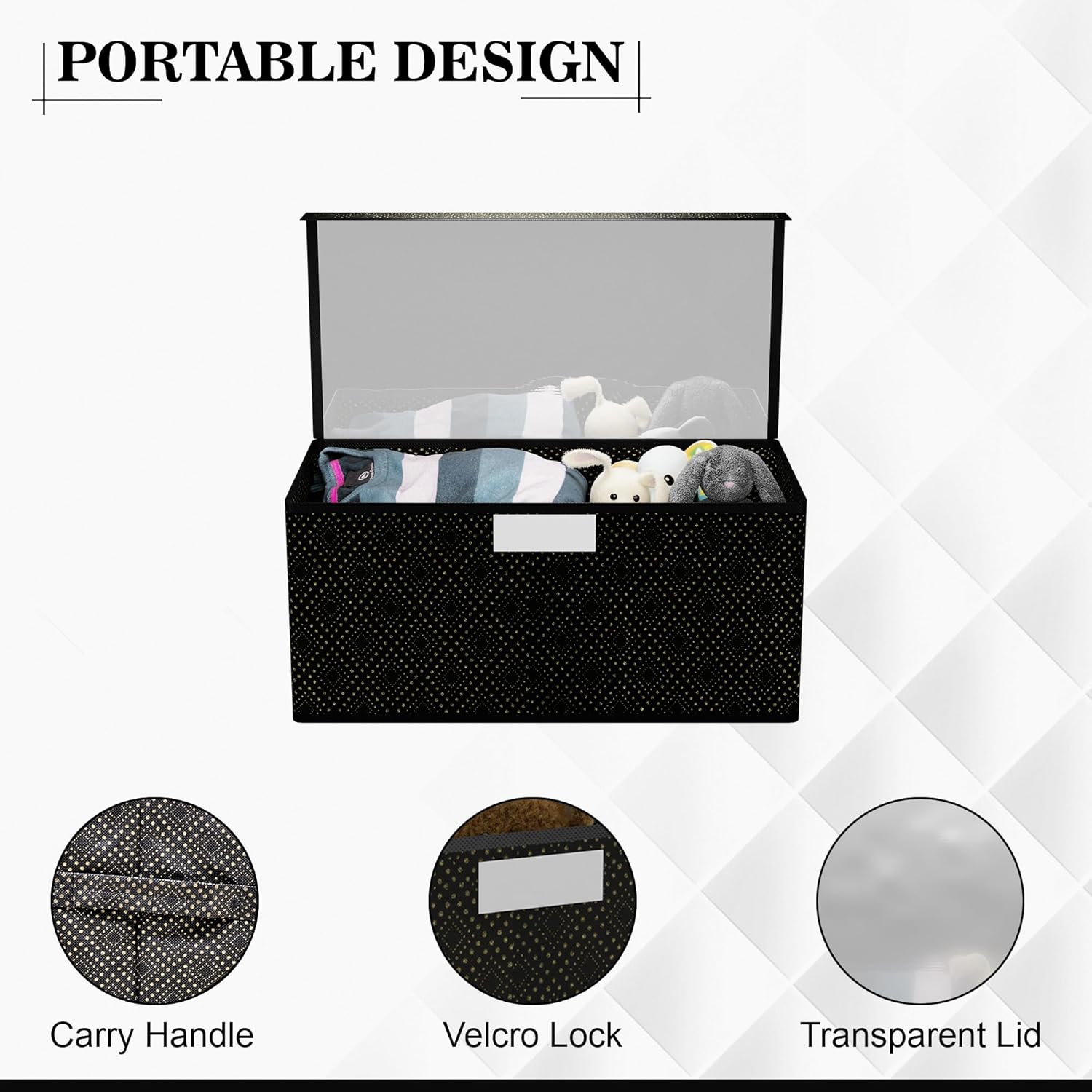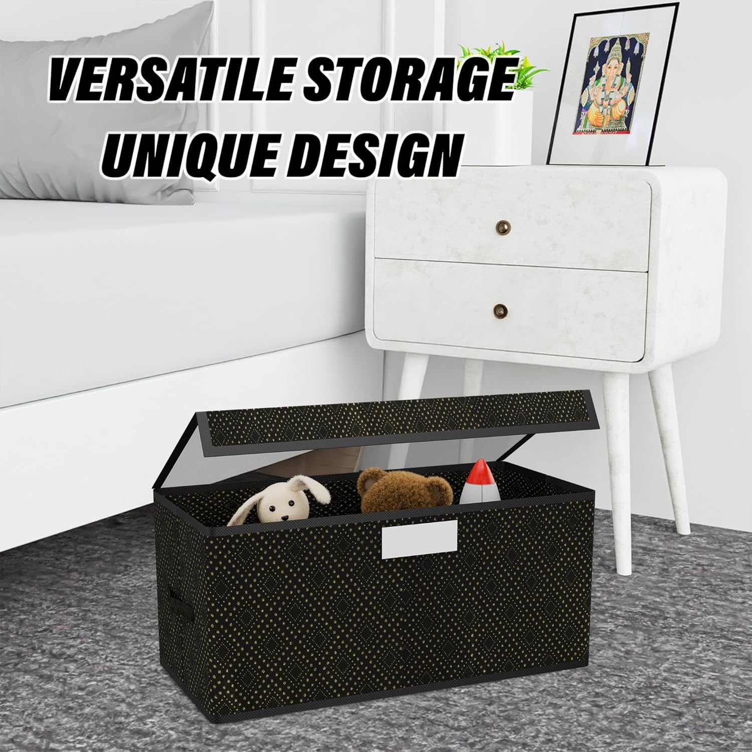✅ PACKAGE CONTAINS – 1 Pcs Storage Box | Large – Golden Dot – Black | Material- Non-Woven | Product Dimension : 43 cm x 28 cm x 31 cm