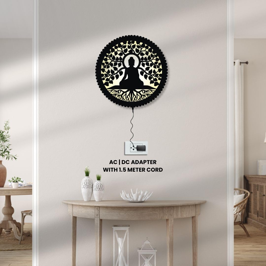 LED Backlight Design – Warm lighting enhances the Buddha silhouette under the Bodhi tree, adding peace and positivity to your space