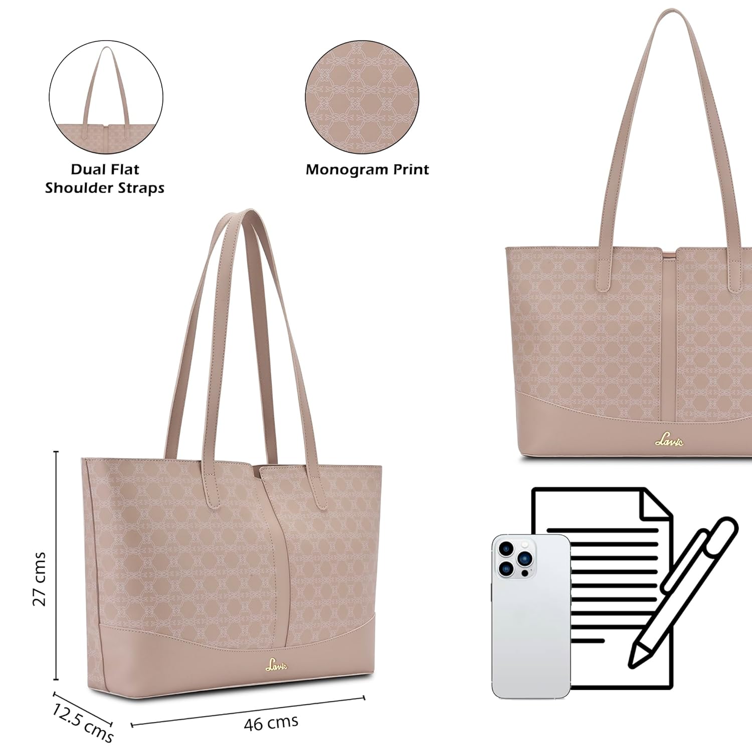 Lavie’s ultra-modern tote bag starrting lavie’s new monogram will complete your fashionable look. This item is created to look stunning and contains inner pockets to organise daily items and a zip closure for convenient security. This tote, which combines style and substance, is exactly what the modern fashionist needs.