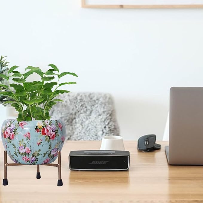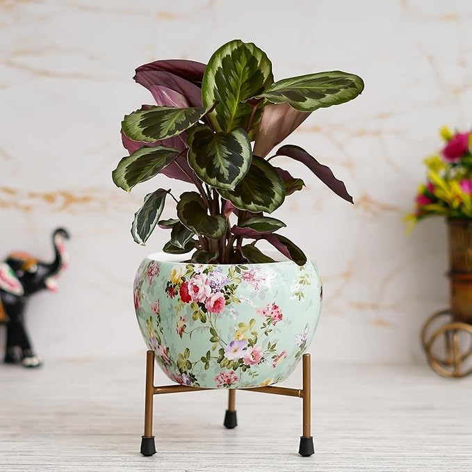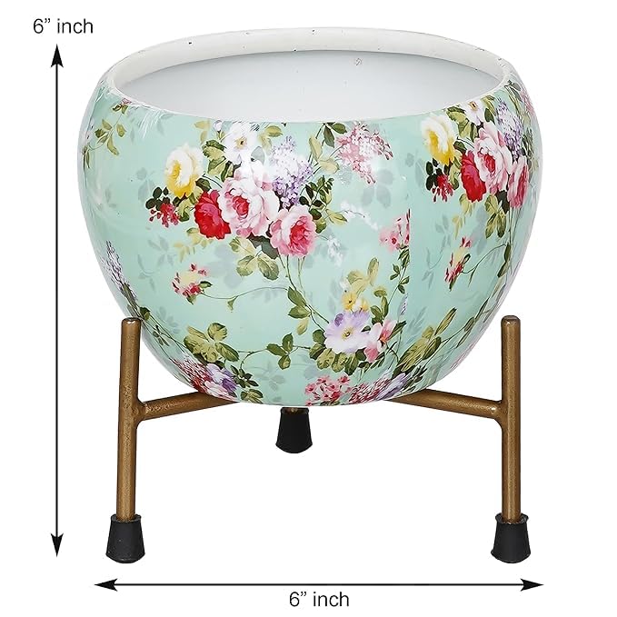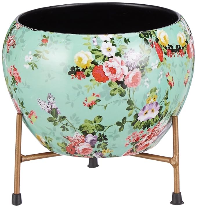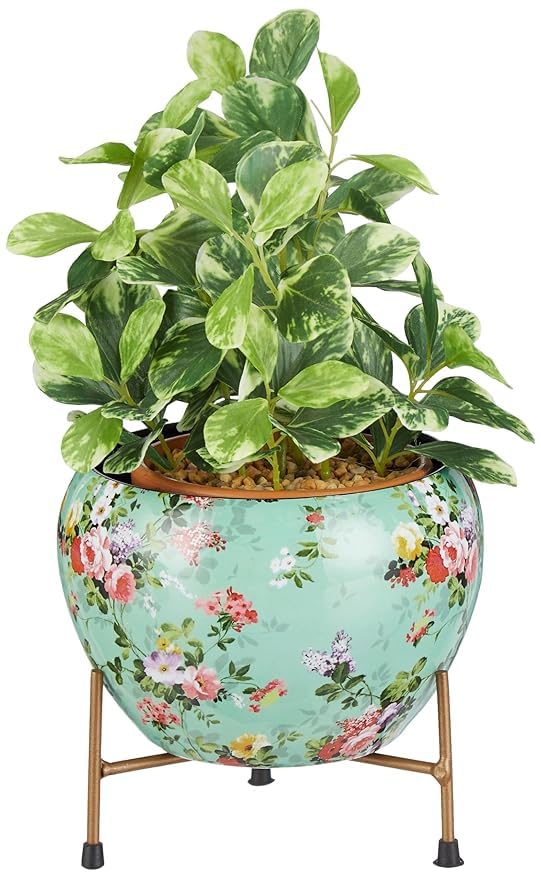 Leafypets decorative pot with stand for indoor rust free metal plant pots for home/living/balcony/room/office.rustproof waterproof Set of 1 multicolour