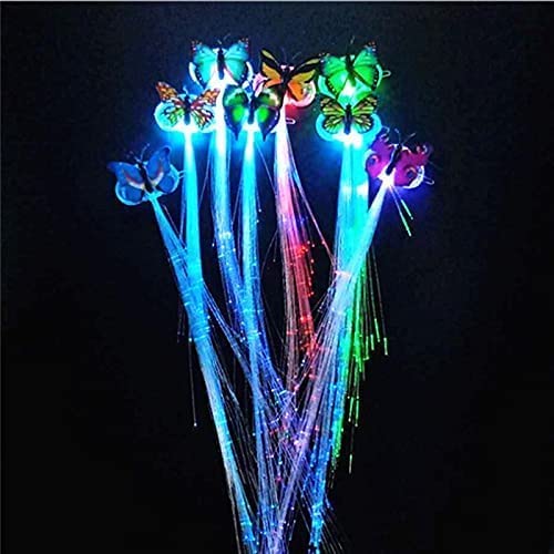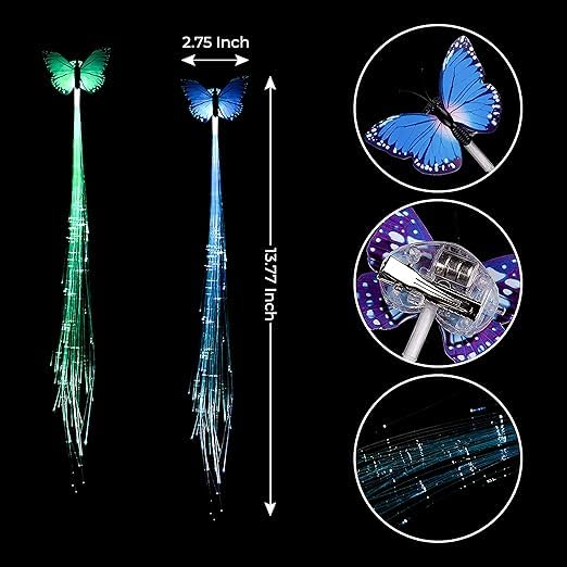 Led Flashing Light Butterfly Hair Clip | Braid Optical Fibber Hairpin Party Decor | Girl And Women Party Favours (Pack Of 2Pcs),Multi