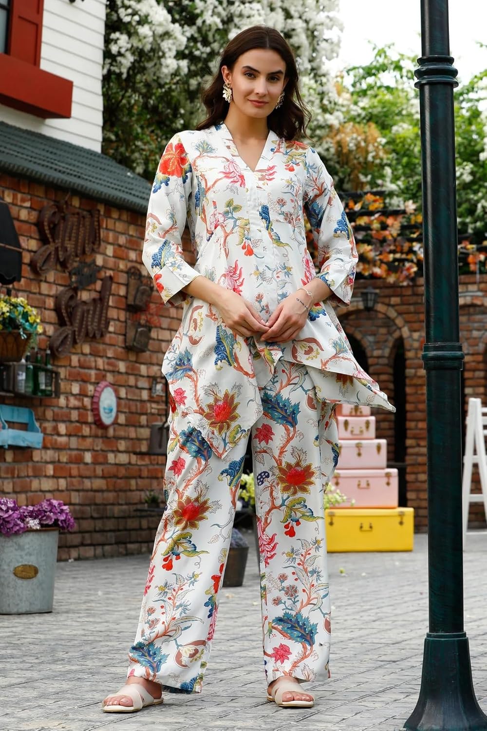 Immerse yourself in the grace of tradition with our Women Ethnic Kurta Set – a stunning Rayon Co-Ord Set that seamlessly blends comfort with ethnic allure. This Fancy Pajama Set, available in a pack of 2, introduces an enchanting combination of a Floral Printed Top and Pant, creating a captivating Full Pair Set. Crafted from rayon, this Kurta Set ensures a sumptuously soft feel against your skin, making it a delightful choice for both casual and festive occasions. The intricate floral print adds a touch of elegance, catering to those who appreciate the timeless beauty of ethnic wear. In this A-line Kurta Set, the pack of 2 provides versatility for your wardrobe, allowing you to effortlessly switch between looks. The carefully designed top complements the stylish pants, creating a harmonious ensemble that’s perfect for any event, be it a family gathering or a festive celebration. Whether you’re strolling through a cultural event or attending a special occasion, this Ethnic Kurta Set is sure to make you the epitome of grace and style. Indulge in the rich cultural heritage with this Full Pair Set that not only exudes traditional charm but also embraces modern comfort. A blend of cultural aesthetics and contemporary fashion that promises to elevate your style statement with every wear.