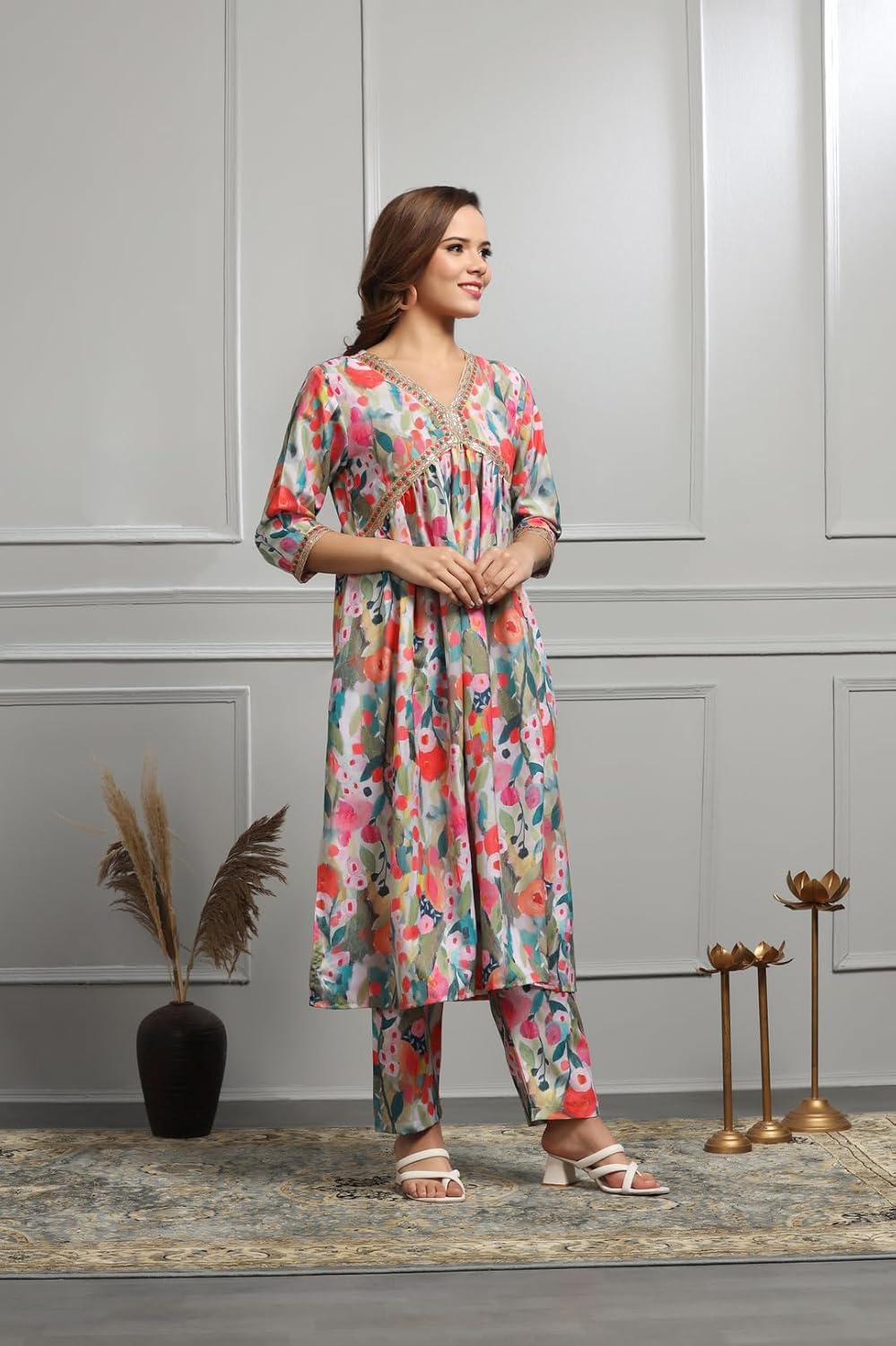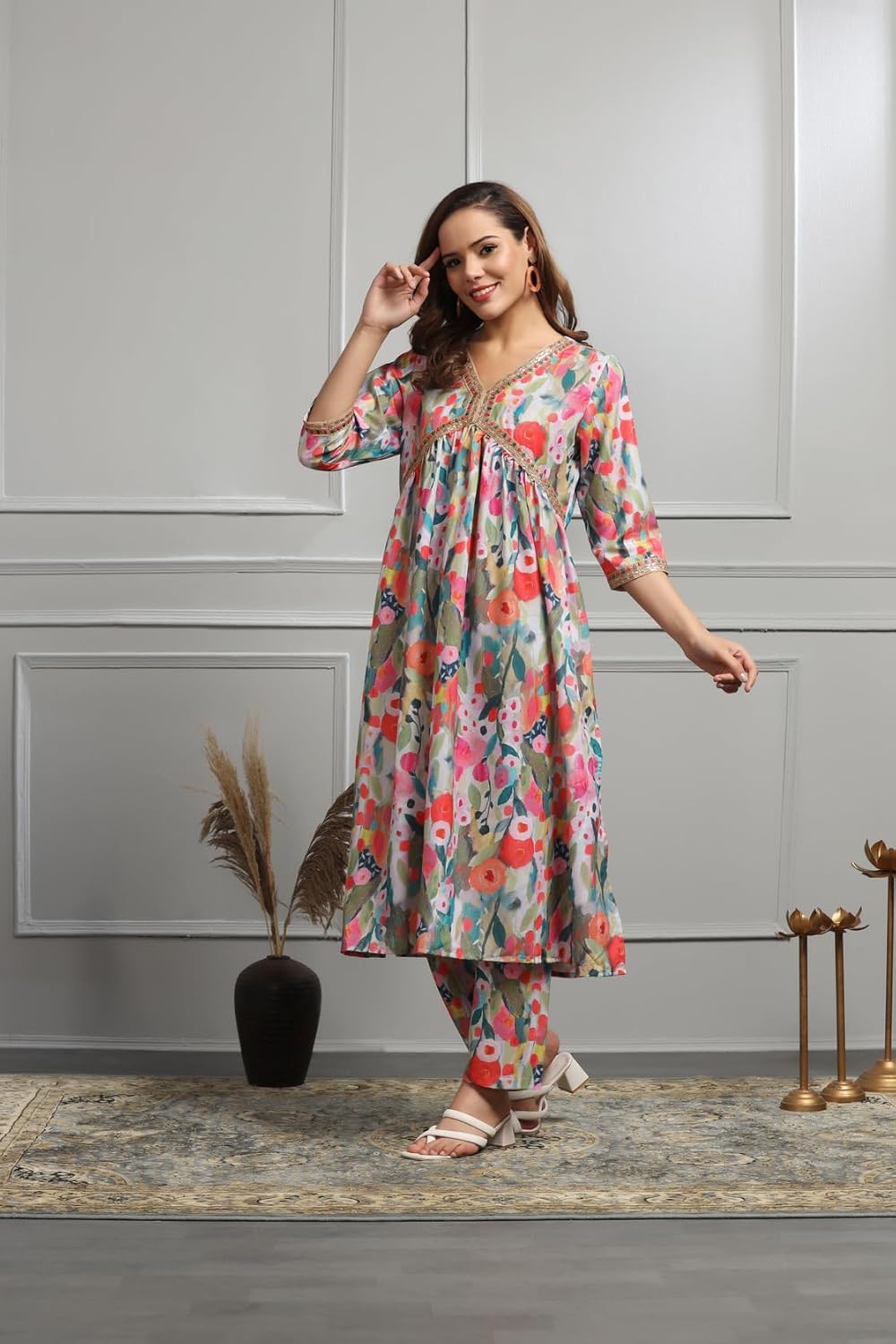 Elevate your ethnic wear collection with our Anarkali Alia Cut Kurta Set, a perfect blend of tradition and contemporary style. Immerse yourself in regal charm with the flattering Alia cut design, ensuring a majestic silhouette for every occasion. This exquisite ensemble is adorned with intricate embroidery detailing on the neckline, adding opulence to your ethnic wardrobe. Crafted from a premium cotton blend, our Kurta with Pant Set offers all-day comfort, allowing you to embrace both style and ease. Simplify your fashion choices with this coordinated perfection – a complete set featuring an Anarkali Alia Cut Kurta paired with matching pants. Ideal for diverse occasions, this versatile ensemble seamlessly transitions from formal gatherings to festive celebrations, showcasing cultural richness and modern aesthetics. Make a statement with our Cotton Blend Kurta with Pant Set, a hassle-free yet elegant addition to your wardrobe, offering delightful comfort in every wear.