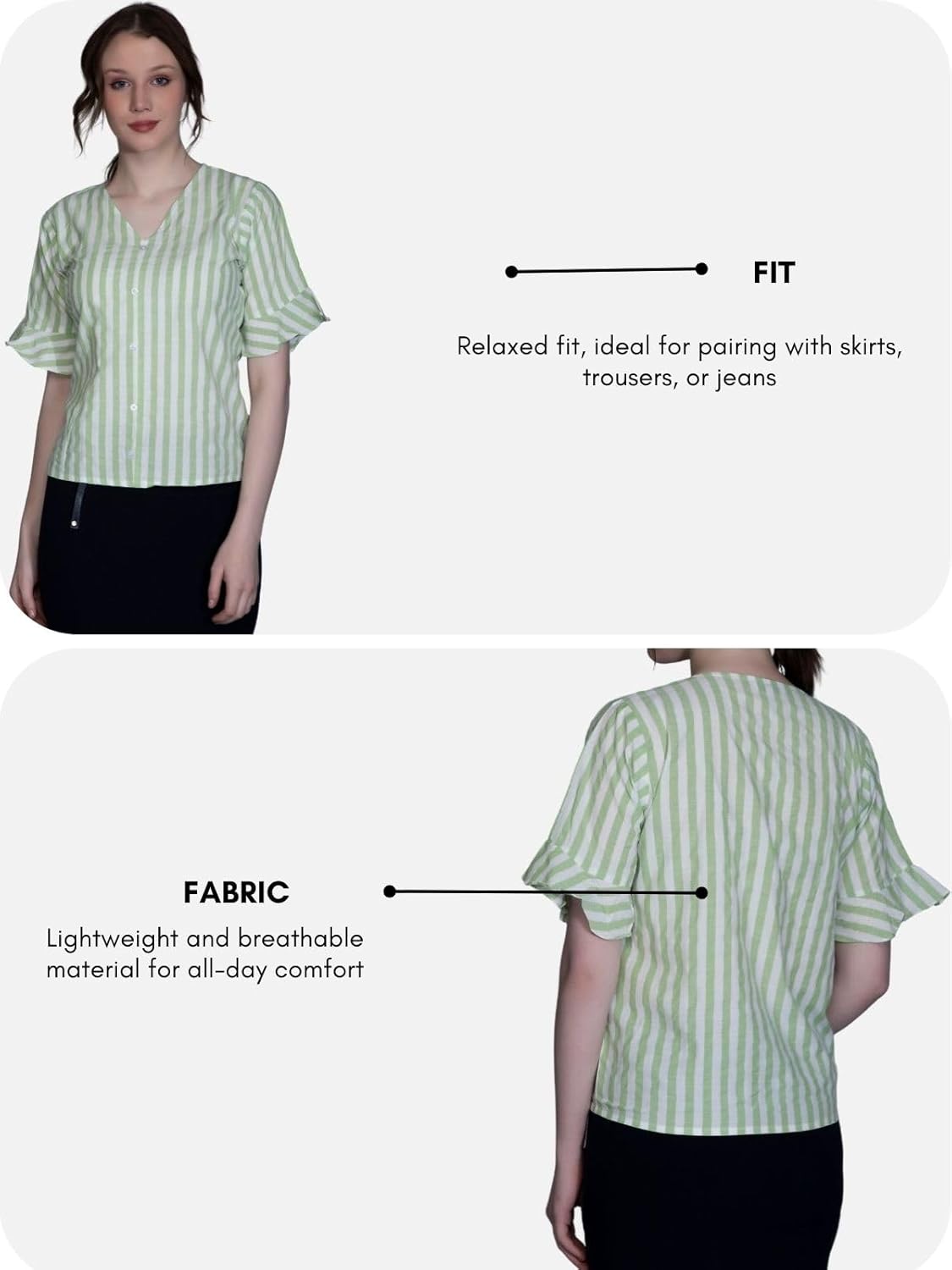 Leriya Fashion Women’s Western Striped V-Neck Tops | Ruffle Sleeves | Comfortable Cotton Printed Button Down Tops for Casual | Office | Travelling | Shopping Wear for Girls