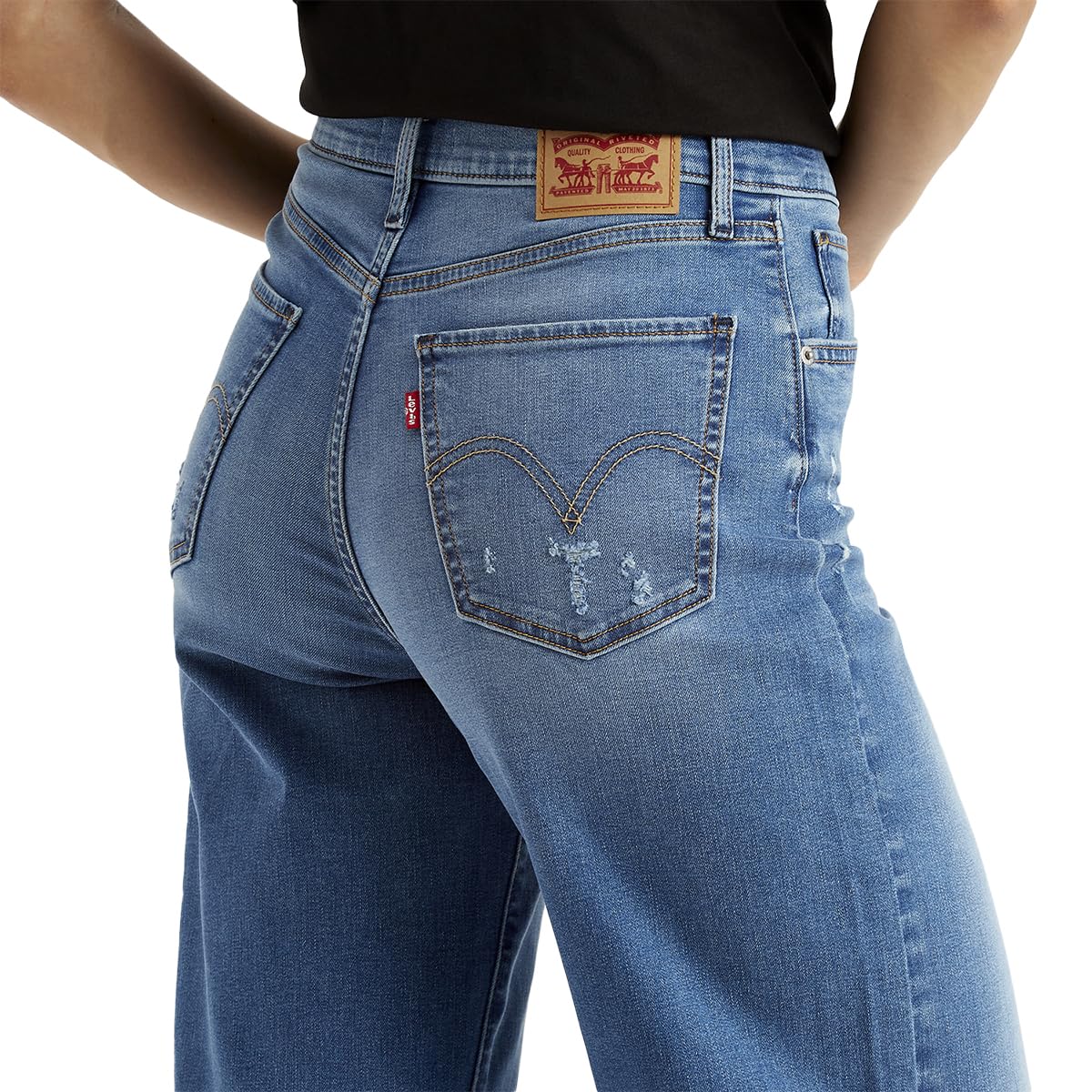 With a figure-flattering high rise silhouette and plenty of adaptable pockets, Levi’s improves denim style! These hr wide leg blue Jeans feature button & zip at the front and a flattering waistband. The wide leg fit style is just right for going out or staying in! 1. Classic wide leg fit; Sits at high rise 2. Team it with our graphic sweatshirt for your daily activities