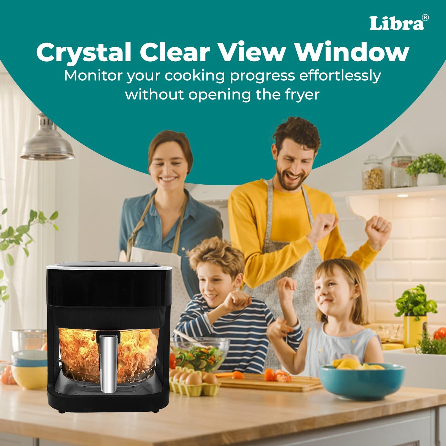 𝐒𝐩𝐚𝐜𝐢𝐨𝐮𝐬 𝟒.𝟓𝐋 𝐁𝐨𝐰𝐥 𝐌𝐚𝐝𝐞 𝐟𝐨𝐫 𝐅𝐚𝐦𝐢𝐥𝐢𝐞𝐬: Designed to meet the needs of growing households, our 4.5-litre capacity air oven fryer gives you room to cook meals for 3–5 people with ease. From large portions of vegetables to whole chickens, the Libra air frier is your go-to solution for daily dinners or quick lunches—all in one bowl.