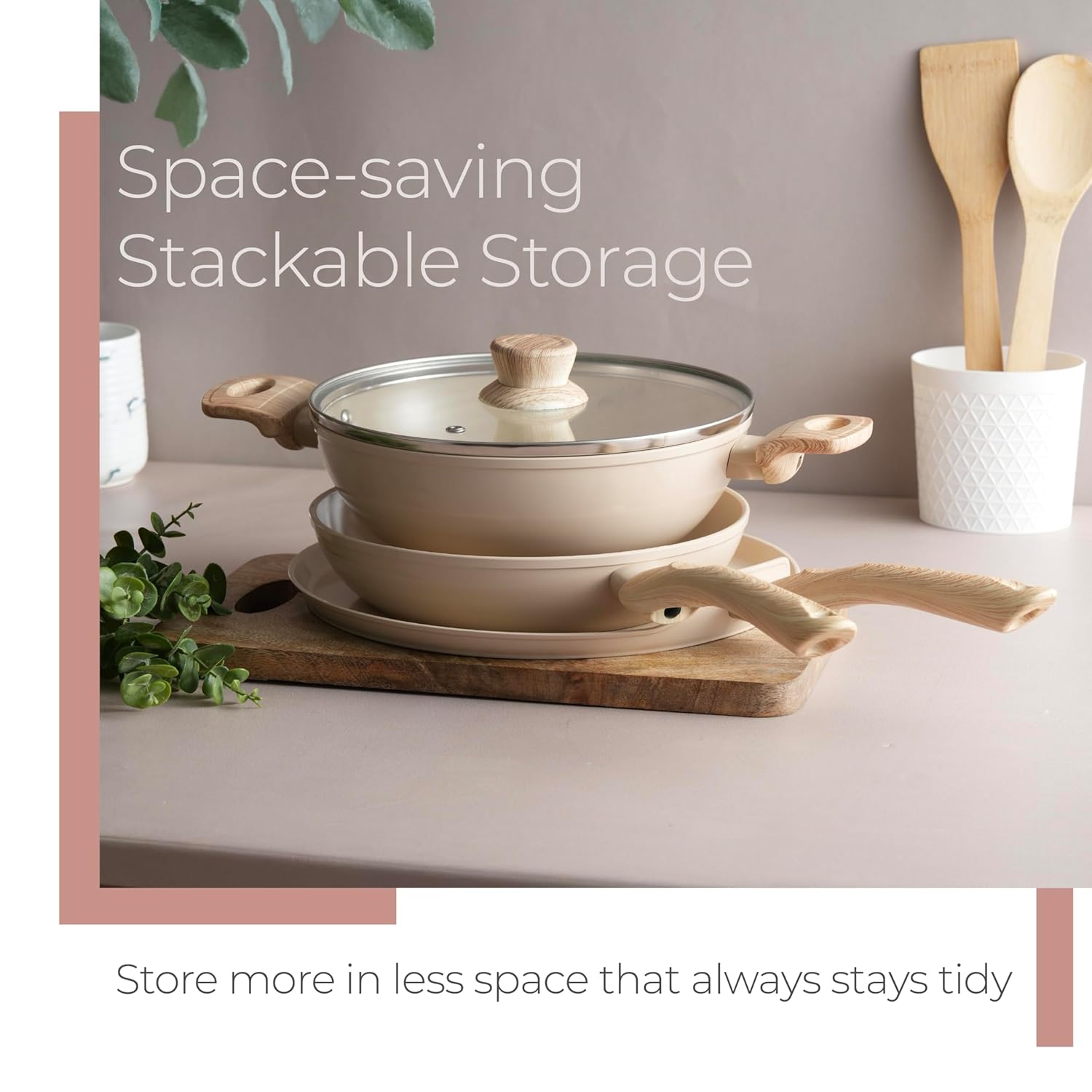 The non-stick surface ensures food glides off effortlessly, without leaving any residue or food burns. Cleaning is quick and easy with just water, and no scrubbing is required, just spotless cookware every time. Enjoy more cooking, less cleanup.