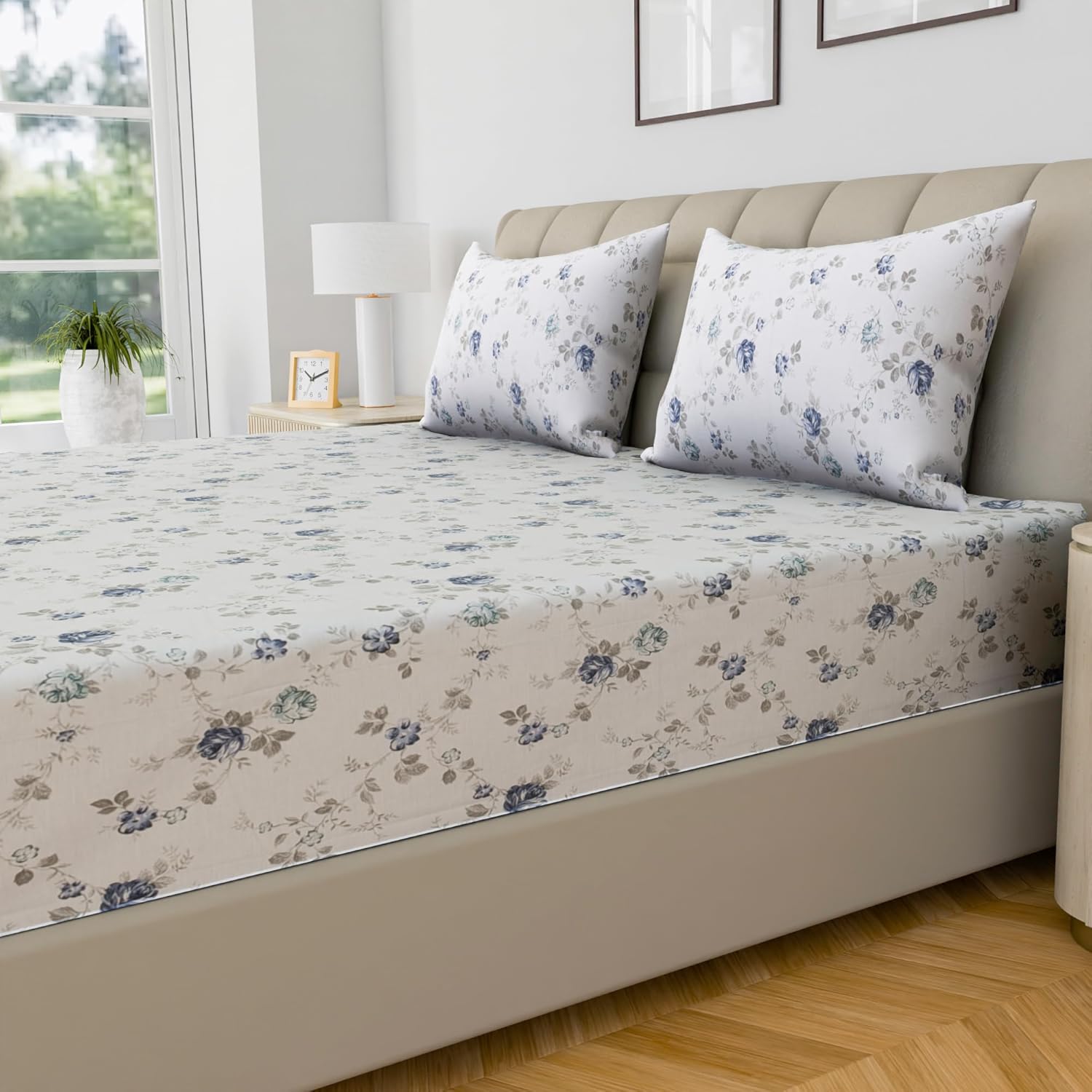 100% Pure Cotton & Percale Weave: Crafted from OEKO-Tex certified natural cotton yarns with a 200-thread count, offering superior softness, smoothness, and breathability for a cozy, luxurious sleep experience