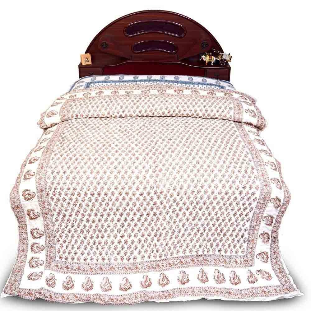 Now sleep in style with world famous Jaipuri pure cotton double bed razai or quilt in traditional sanganeri hand block print of Rajasthan. These good looking, fluffy, hand-made Indian quilts are a specialty of Jaipur.
