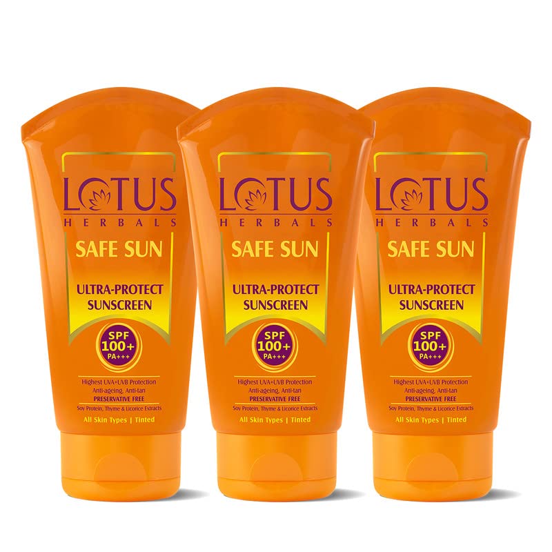 Lotus Herbals Safe Sun Ultra Sunblock For All Skin Types| Spf 100+ | Pa+++ | Anti-Ageing | Preservative Free | 50G (Pack Of 3)