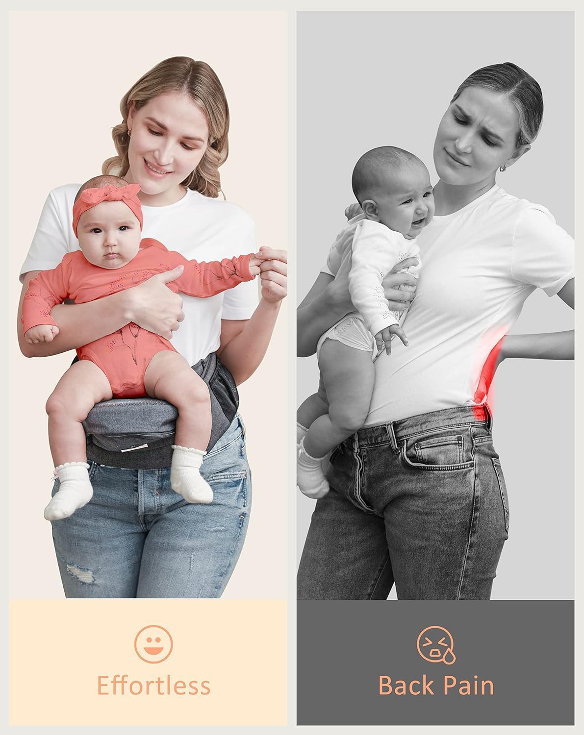 【 Non-Slip & Safety Design 】Our baby hip carrier has a non-slip surface to keep your little one firmly in position. Strong straps and buckles in the safety design give parents peace of mind while keeping their children secure and comfy.