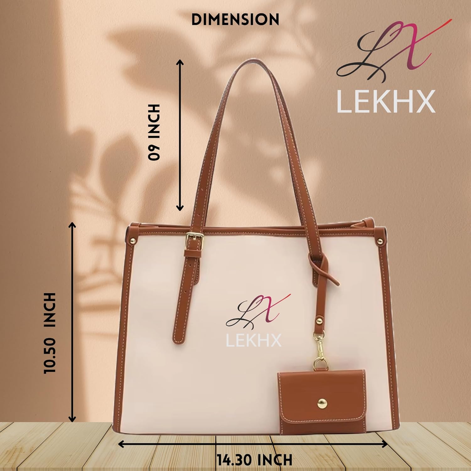LX LEKHX Women’s PU Leather Handbag |Tote Bag for Office, College & Travel | Stylish Shoulder Purse with Detachable Pouch | Premium Designer Bag for Modern Women | Laptop Fit 14 Inch