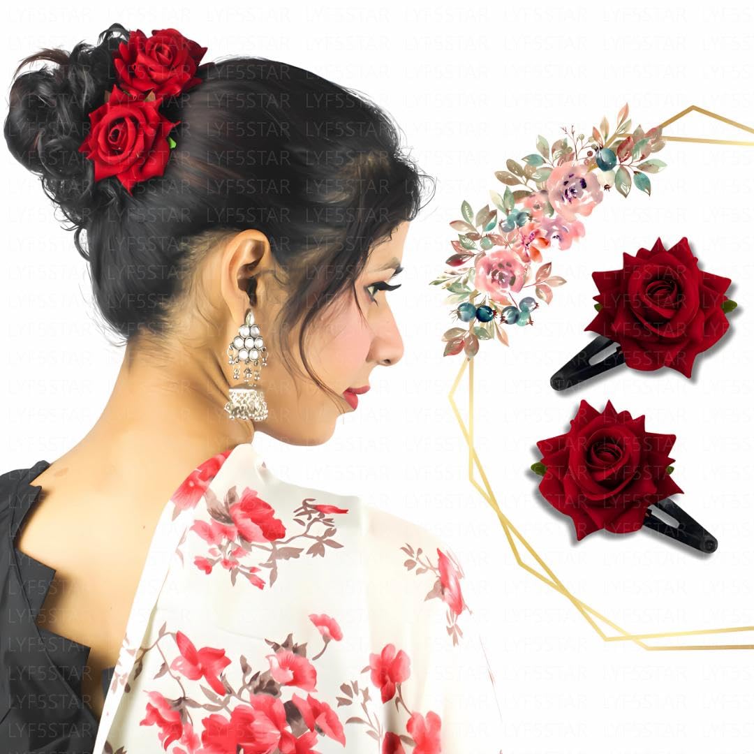 LYF5STAR Artificial Rose Tiktok Hairpin – Pack of 6, Suitable for Indian Wedding, Stylish Women Hairstyle, Hair Accessories for Girls and Women – Pack of 6