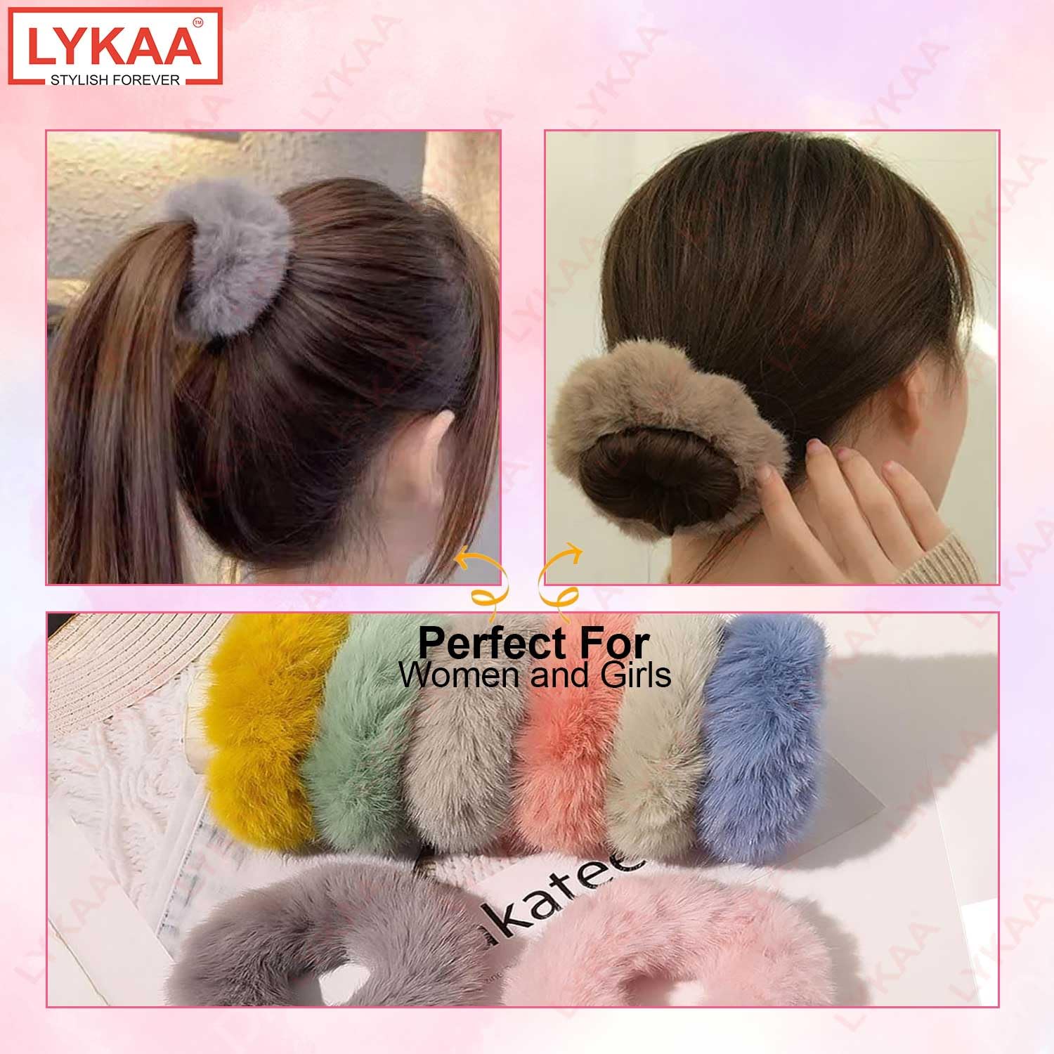 LYKAA Fancy Stylish Spongy Hair Rubber Bands Hair Scrunchie Elastic Ponytail Holder Fluffy Faux Artificial Rope Fur Hair Ties for Women Hair Accessories for Kids Girls Women (Multicolor) – Set of 10