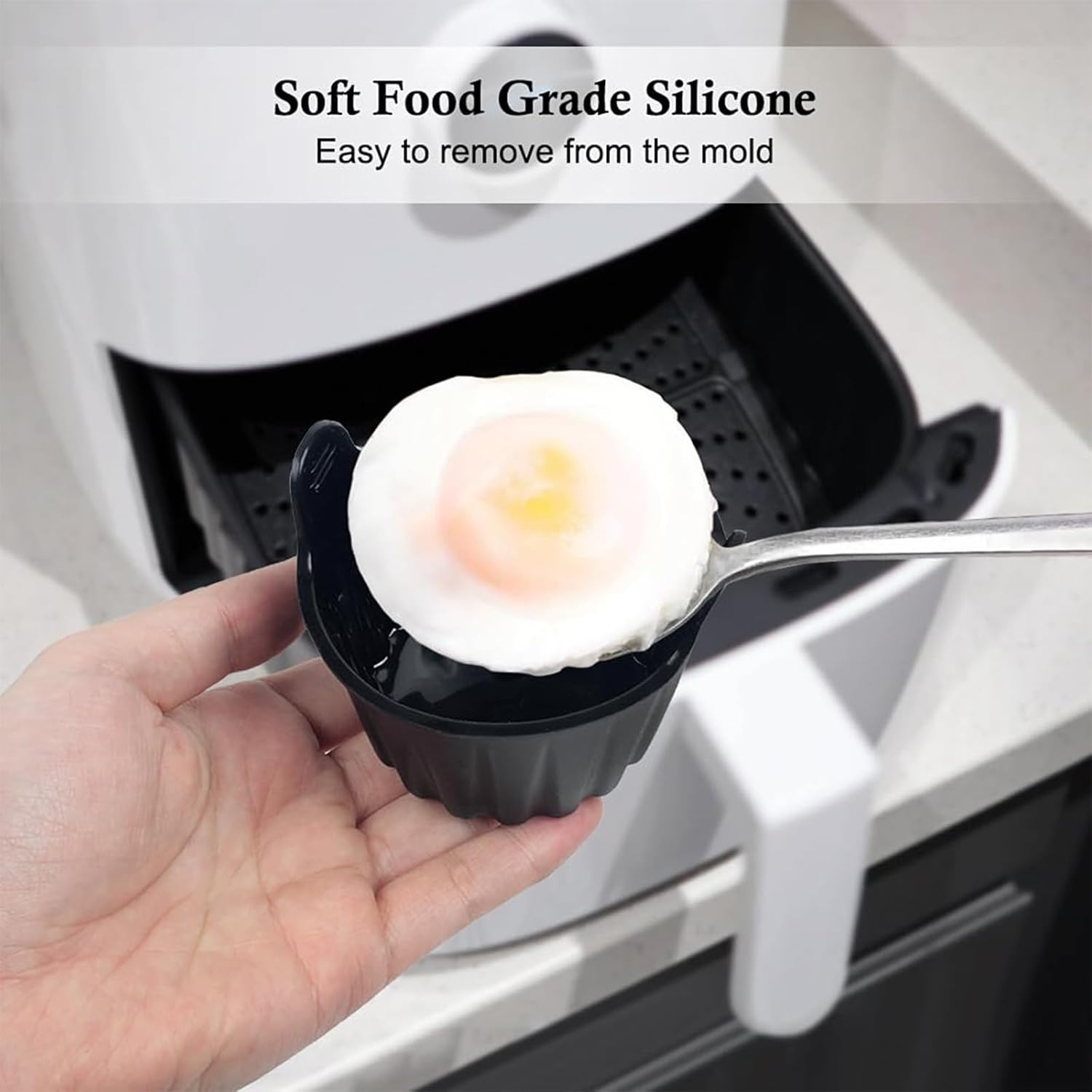 【Multi-Use Functionality】Ideal for baking muffins, cupcakes, and other desserts, The mould for air fryer and oven ensures even heat distribution, preventing spills and ensuring ideal shaped baked goods every time.