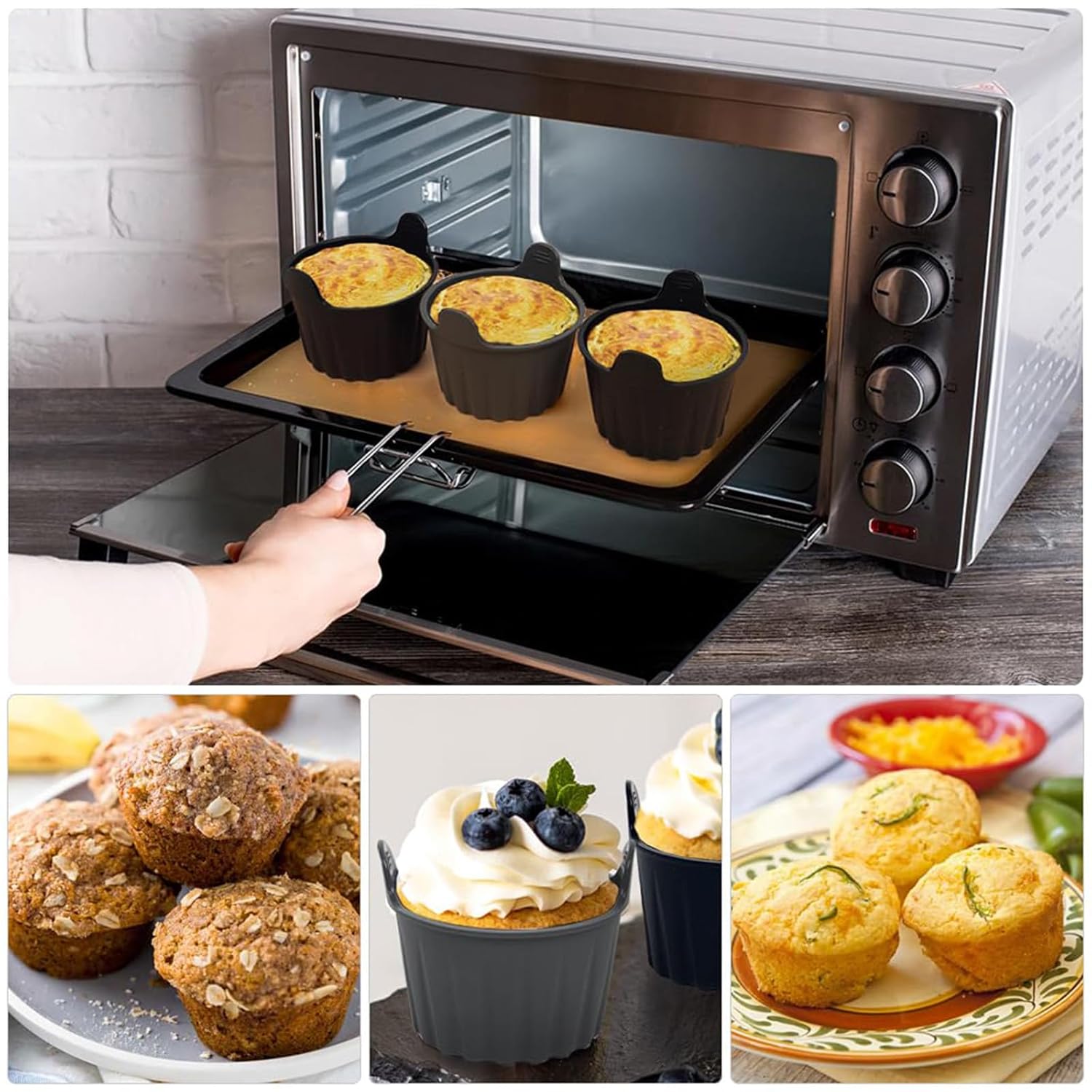 【Premium Baking Moulds】Crafted with high-quality material, these muffin moulds for baking ensure durability and consistent baking results, The heat-resistant design withstands high temperatures in air fryers, ovens, and microwaves, making them versatile for all your baking needs.