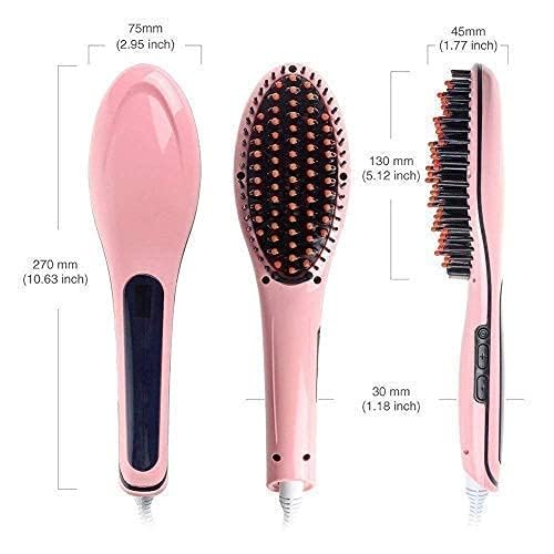 MARMIX 3-in-1 Fast Hair Straightener Comb Brush for Women with LCD Temperature Control Display Ceramic Electric Hair Brush, Quick Straightening & Styling Tool (Pink)