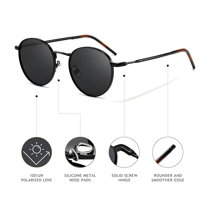 Fashion and stylish design – The square Round sunglasses are suitable for any face. Alloy metal frames with acetate temple tips and glass lenses are impact and durable that can show your taste, your choice, your personality.