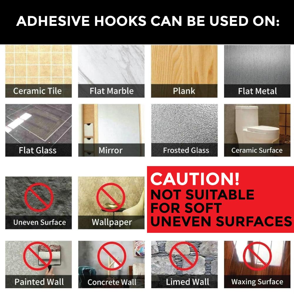 No Drilling, No Mess: These wall hooks eliminate the need for nails or drilling, protecting your walls from holes and damage.