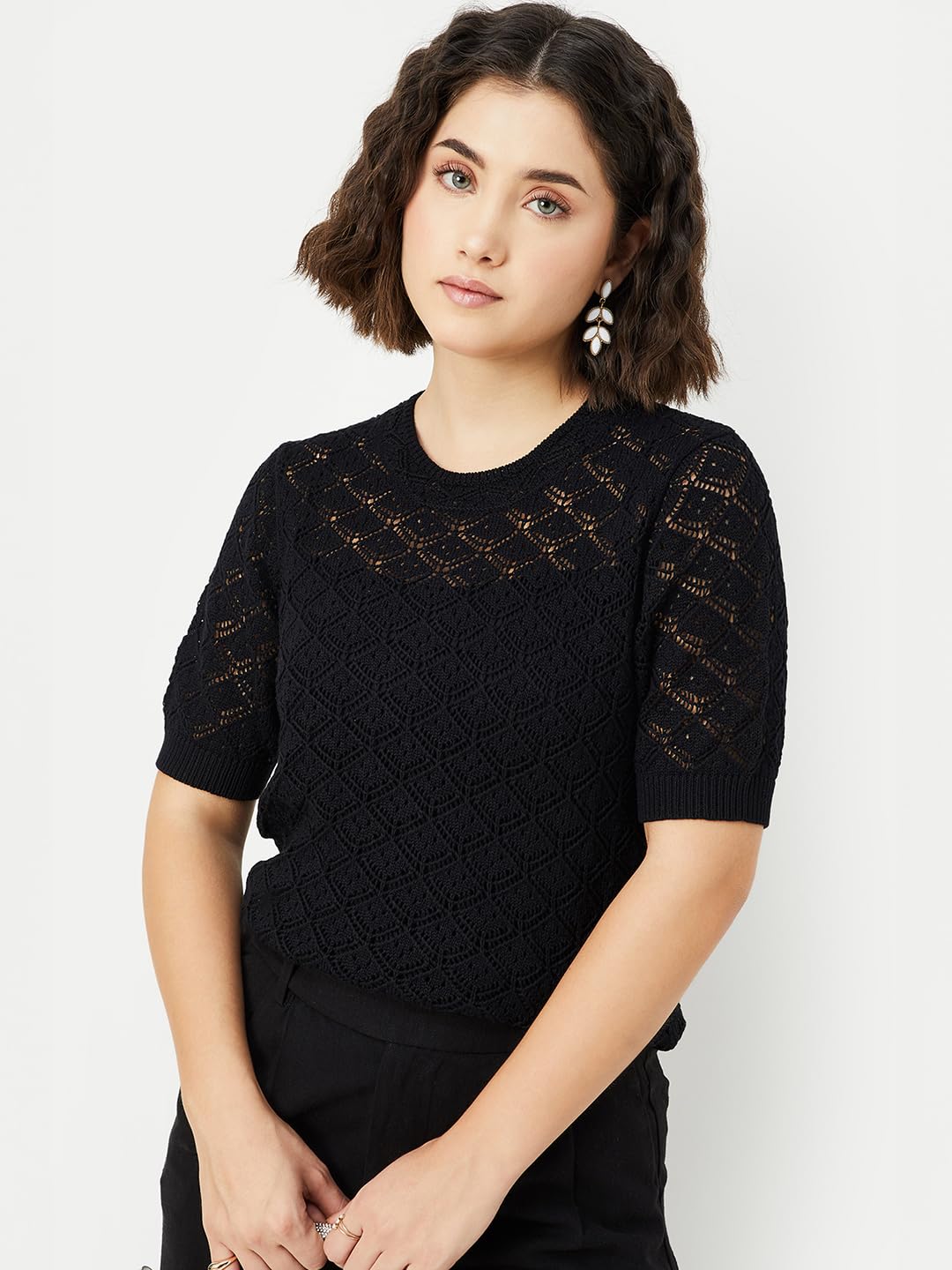 Women Lace Knit Blouse