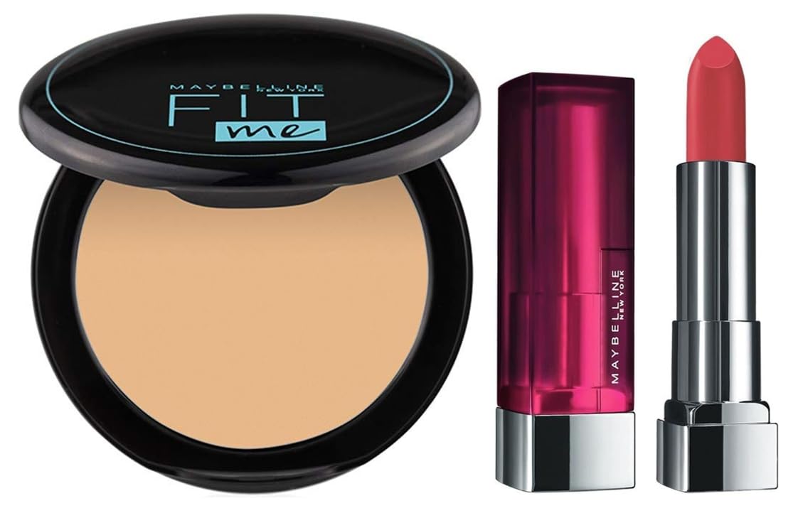 Maybelline New York Matte Lipstick, Intense Colour, 671 Heated Pink, 3.9g & Maybelline New York Oli Control Powder, With SPF to Protect Skin from Sun, Absorbs Oil, Fit Me, 128 Warm Nude, 6g