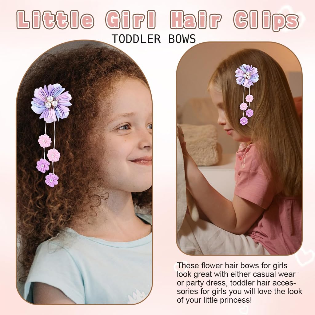 MAYCREATE® 4PCS Hair Bows for Girls,6 Inch Purple Flower Grosgrain Ribbon Bows With Alligator Clips,Kids Hair Accessories for Toddlers Teens Back to School Braids Pigtails Decoration (2 Colors)