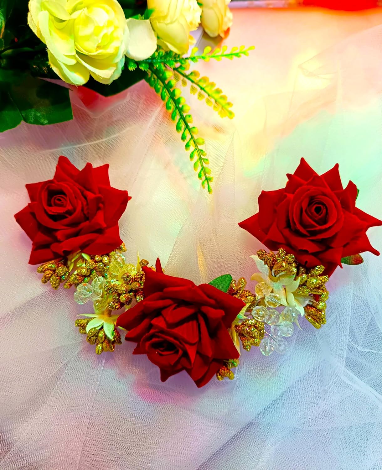 Whether you’re the bride, bridesmaid, or a wedding guest, this versatile piece complements both traditional and contemporary outfits. Lightweight and easy to secure, it adds a romantic floral touch without the fuss of real blooms.