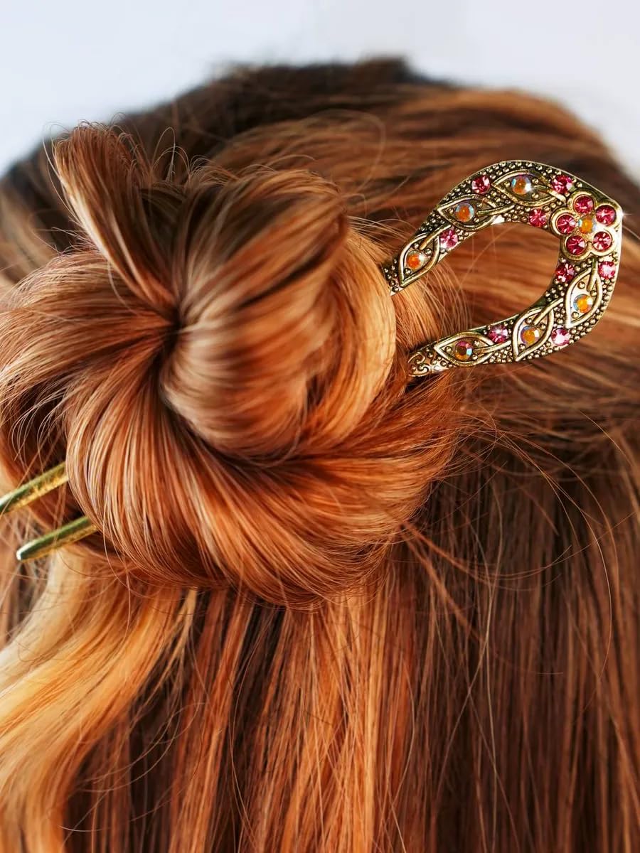 Coming with sparkling rhinestone crystals and intricate carved patterns, these French Hair Pins feature a U-shaped design which makes it easy to put in hair bun to enhance your hairstyle