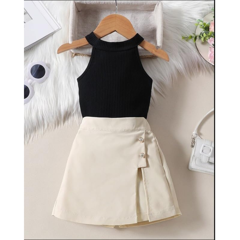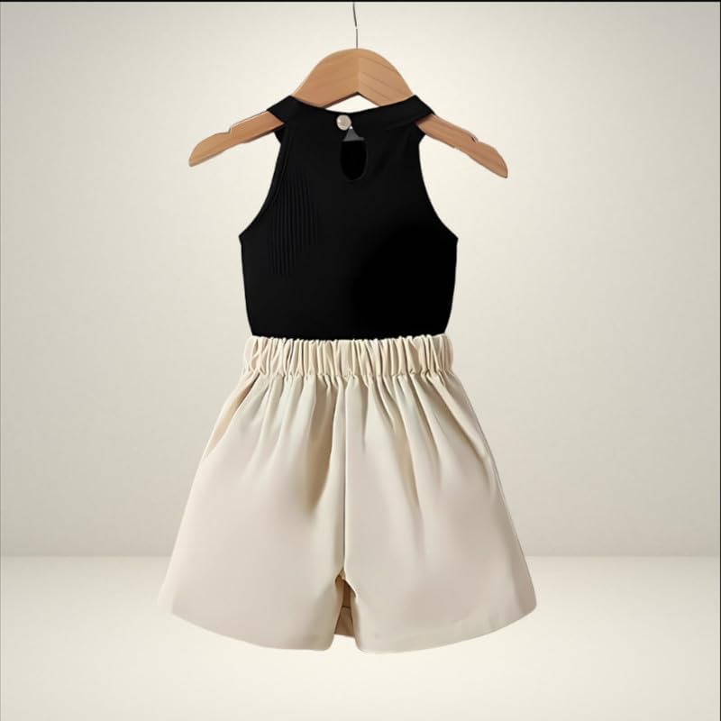 Trendy girls’ shorts and tank top set with a classic round neck design, offering comfort and style for casual outings, playtime, or summer wear. Lightweight fabric ensures all-day ease.