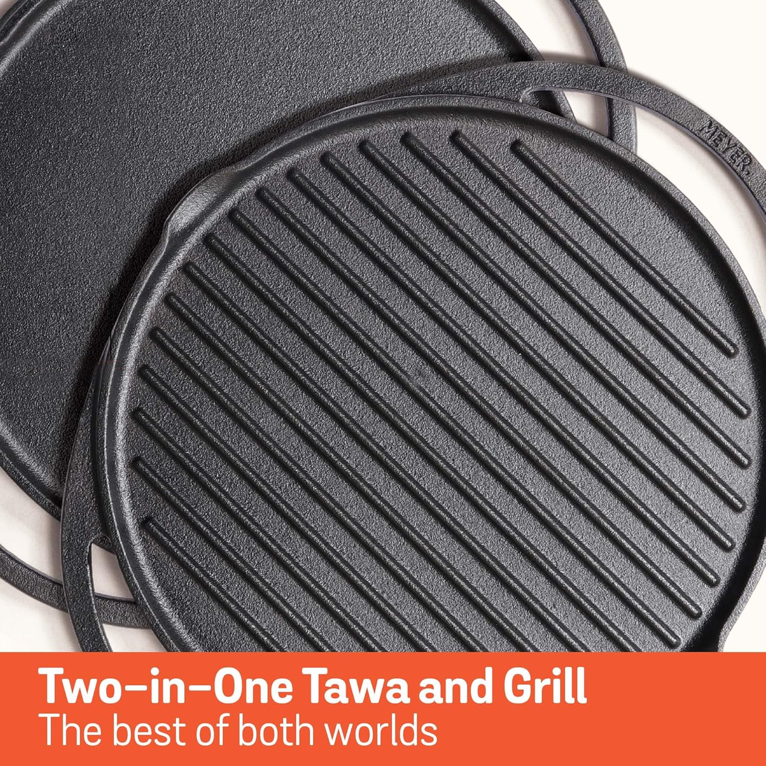 π₯ TWO-IN-ONE Tawa & Grill: Flat Surface on one side, and Grill Ridges on the other. Flat tawa for making dosas, rotis, chilla, uthappam, etc, and ridged grill for searing, roasting, and barbeque. Uni-body one-piece design with easy pouring lips on the grill side