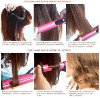 Its 360-degree rotating cord ensures that each and every strand of your hair is styled,How to use: Curl Press the convert button to the perm & curl hair, clip in the hair, and then begun to curl & prem. Than no motion for a while. They have curled hairstyle. Straight Press the convert button to the curl straight hair. Slide to pull straight. They have a straight hairstyle. 2 in 1 hair beauty set: curl & straight Curl: Use hairpin-clip the hair, through the marcel Device scroll in all the hair, slightly refrain from a little of scalp pain, You can burn up to a satisfactory hair. Straight: Clip the hair into both sides, slightly refrain the little pain from the scalp, you can arbitrarily make the shape.The Hair Styler For Women Comes With One Styling Button Without Any Hassle Of Carrying Several Attachments. Get Ready With Salon Styled Hair For Any Occasions; Be It Party, Date Night And Or While Traveling.