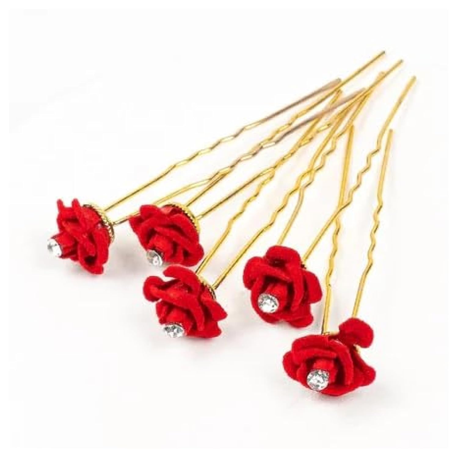 🌹 10 Elegant Red Velvet Flower Pins – Includes a set of 10 beautifully crafted red velvet roses, each with a sparkling stone center, designed to add charm and festive flair to buns and updos for women and girls.