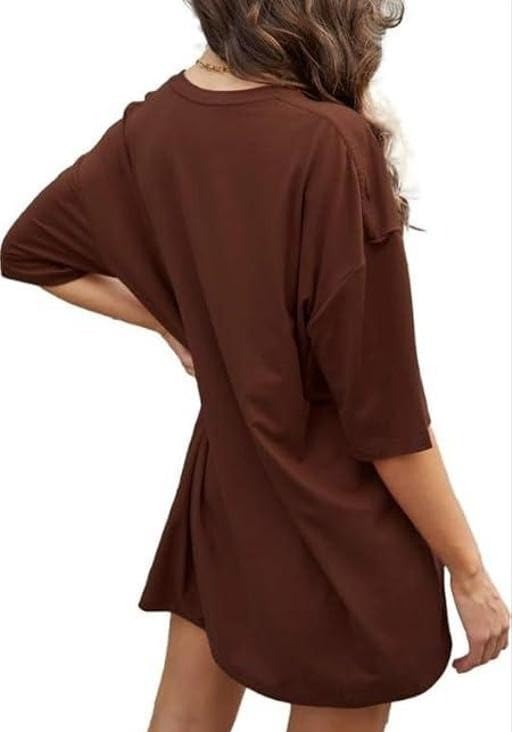 Minimalist Bear Print Oversized Women’s_T-Shirt – Soft Cotton Fabric, Short Sleeves, Trendy Brown Casual Top