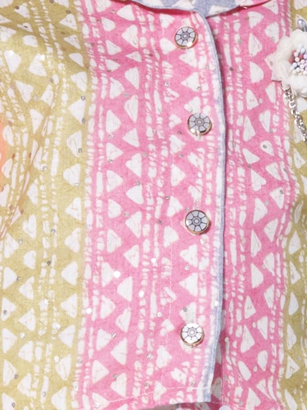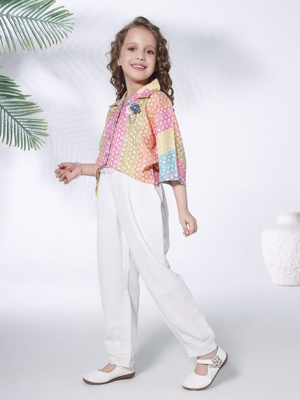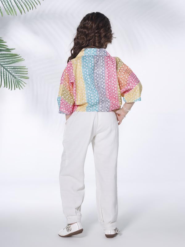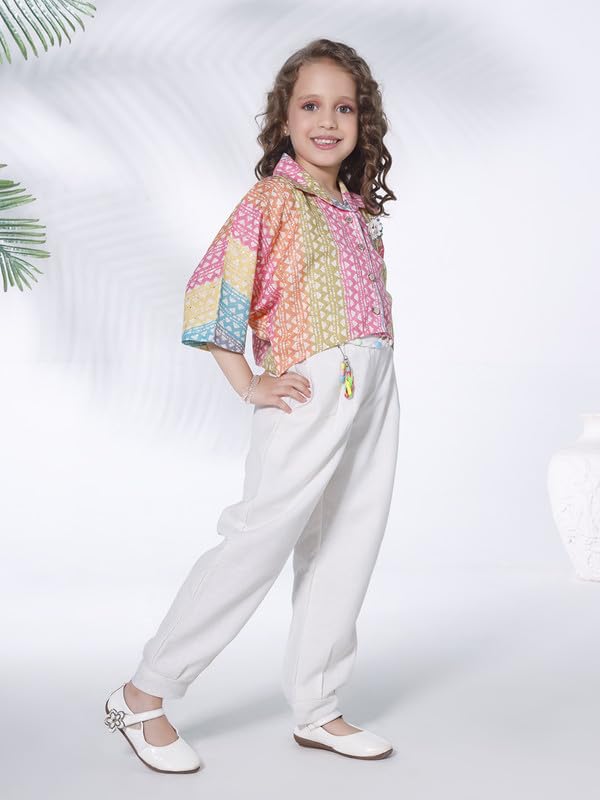 Ministitch Girls third fourth Sleeve Shirt collar Abstract Print Crop top with Harem pant Co-ord Set – Multicolor