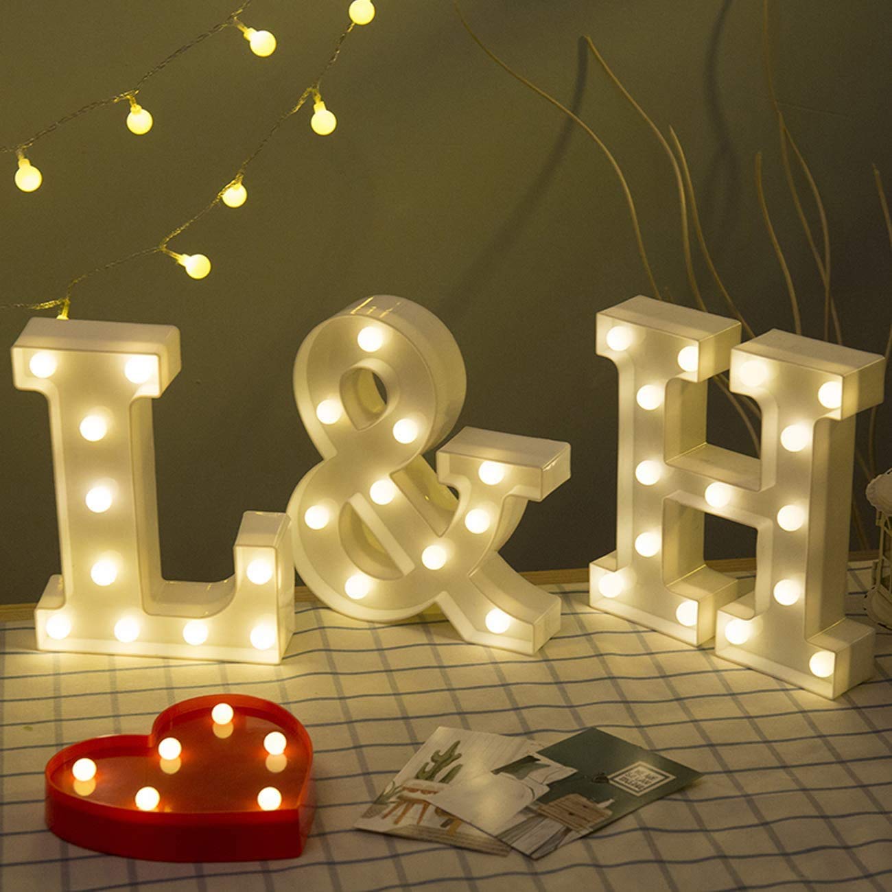 DIY COMBINATION – 26 alphabetic, 0-9 numbers, &, @, LOVE, CLOUD, HEART character LED lights, such as for arbitrary combination into, HAPPY DIWALI, I LOVE U, HOME, MARRY ME, HAPPY BIRTHDAY, U&M, 2020, etc, just play your imagination.