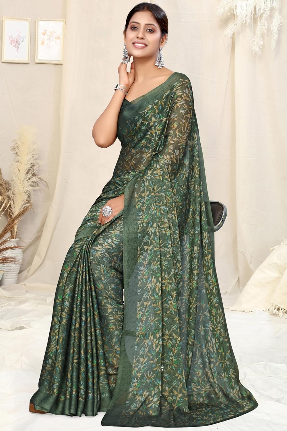 Generic Name : floral print saree | green saree for women party wear | saree for girls party wear farewell
