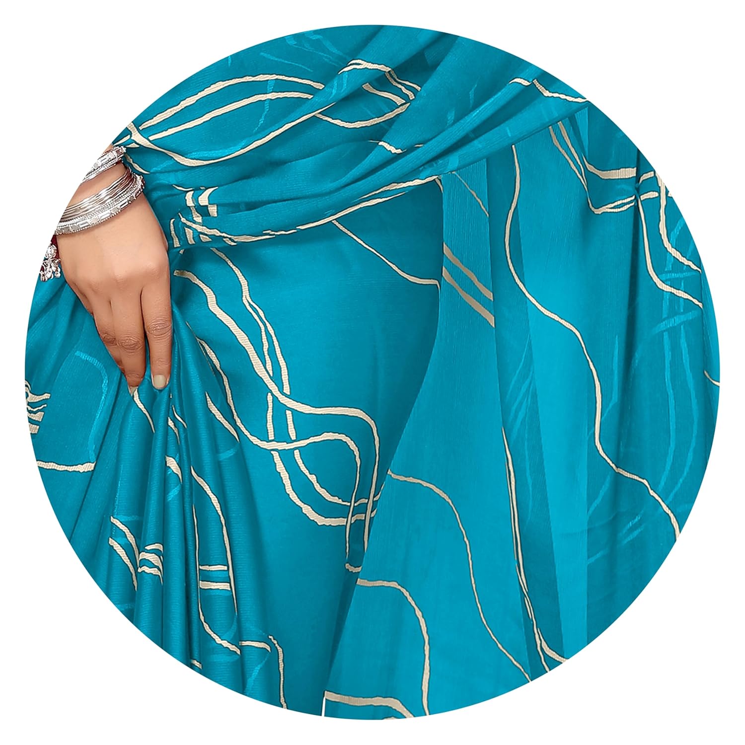 Crafted from luxurious chiffon, the saree is lightweight and breathable, providing comfort and ease of movement while exuding sophistication for all-day wear.