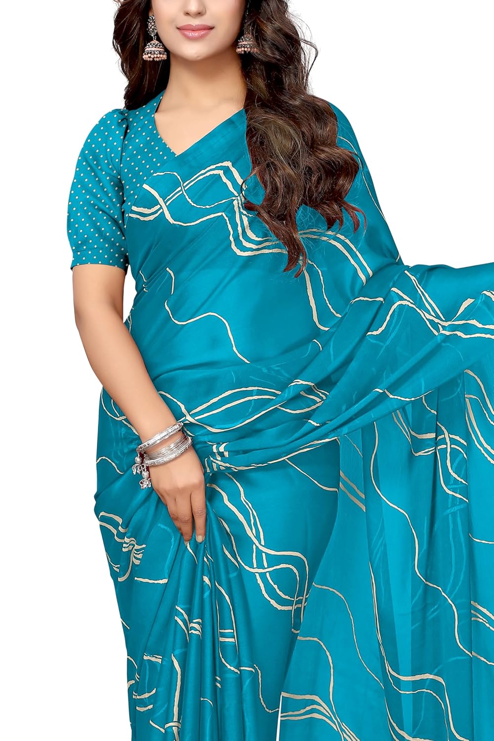 The MIRCHI FASHION Women’s Chiffon Geometric Printed Saree is the perfect addition to your wardrobe for a stylish and glamorous look. The saree, made from high-quality chiffon fabric, features a unique geometric print that brings a modern twist to traditional ethnic wear. With the saree measuring 5.5 meters and the blouse piece at 0.8 meters, you can customize the fit to your comfort, ideal for sizes ranging from 32 to 42 inches. Available in a striking combination of yellow and green for the saree, and yellow for the blouse, this saree is perfect for festivals, family get-togethers, business functions, and more. Its versatile design is suitable for women of all ages. Pair it with accessories to complete your look and get noticed at any event.