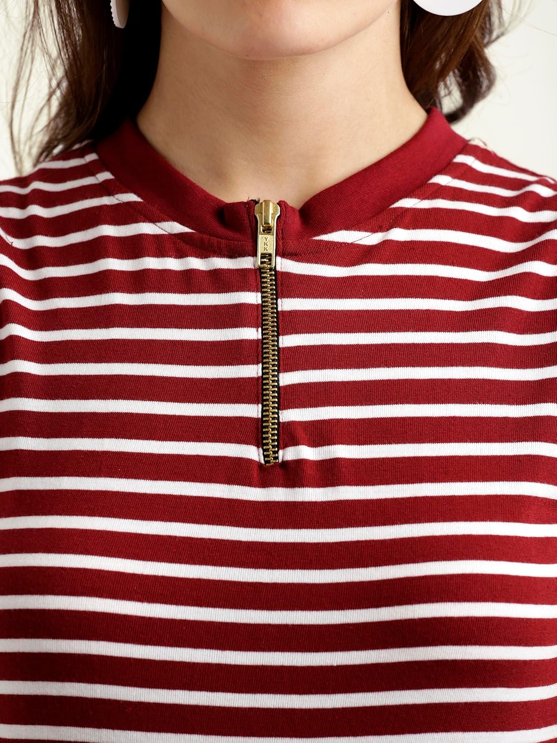 Navy Blue and white striped cotton sleeveless bodycon midi dress, has a zip closure at front.