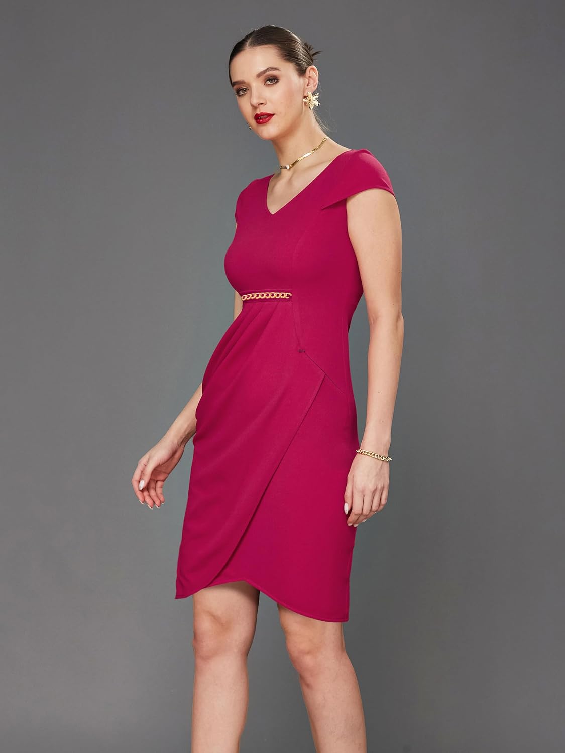 Spruce up your wardrobe with this dress from Miss Chase available on Amazon. You can pair this solid knee-long wrapped with some nice pair of heels and you are good to go. It is perfect for every occasion from a day out with friends or a night of get-togethers with family.