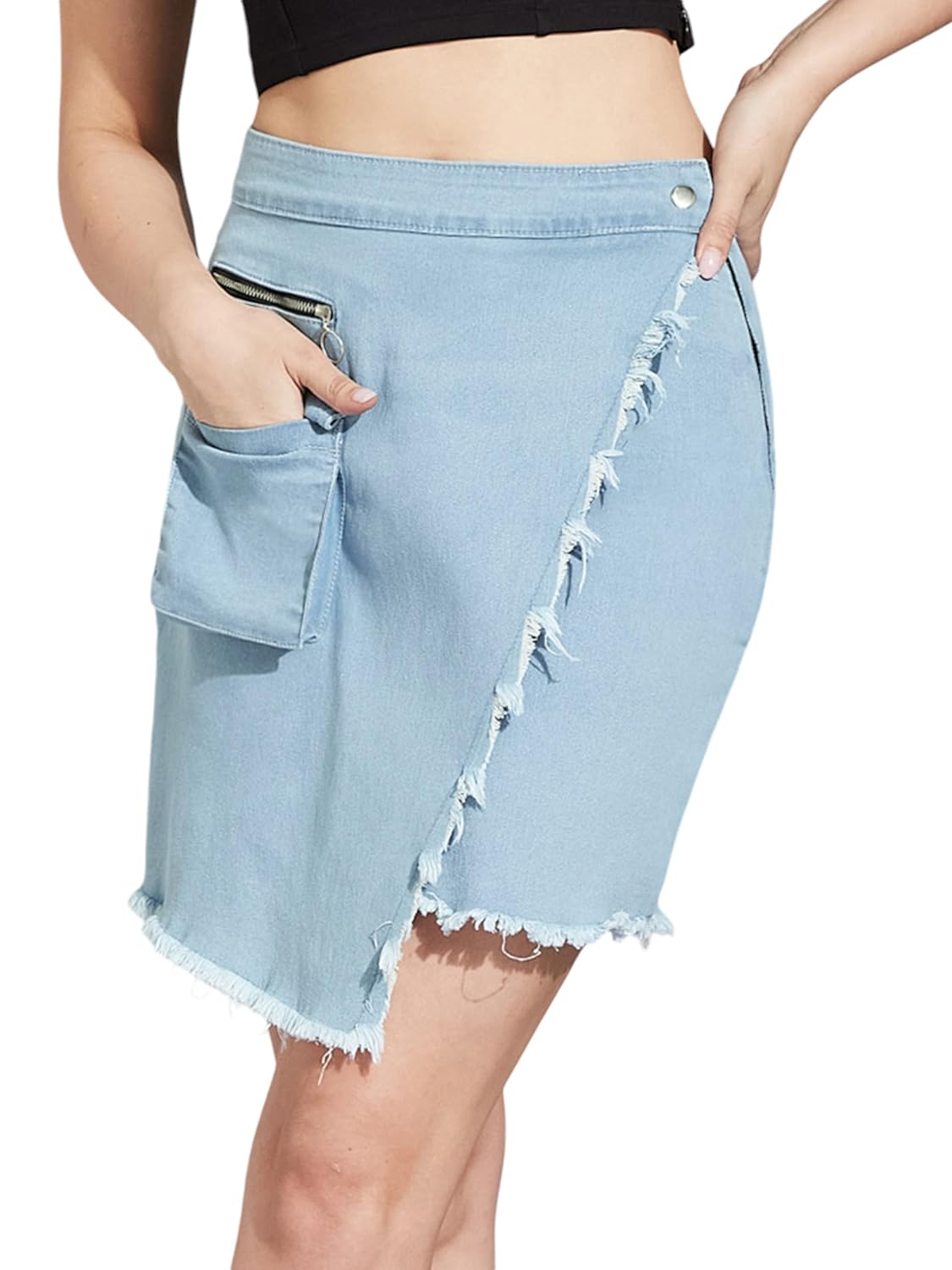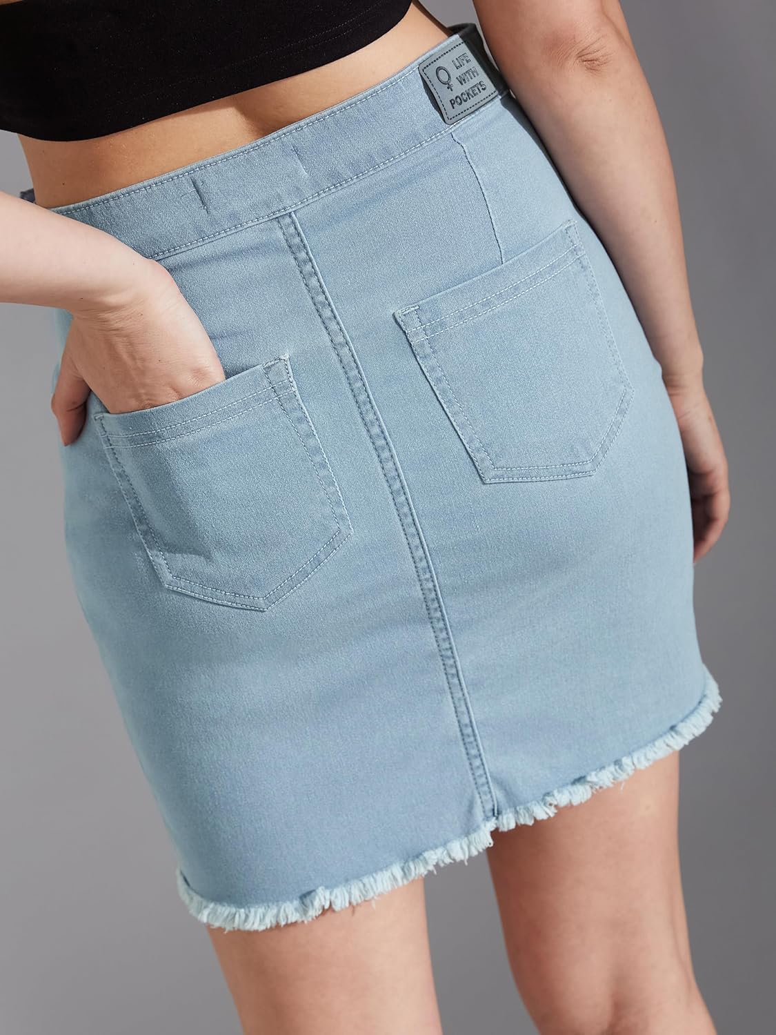 Miss Chase Women’s Light Blue Regular High Rise Clean Look Above Knee Stretchable Denim Skirt