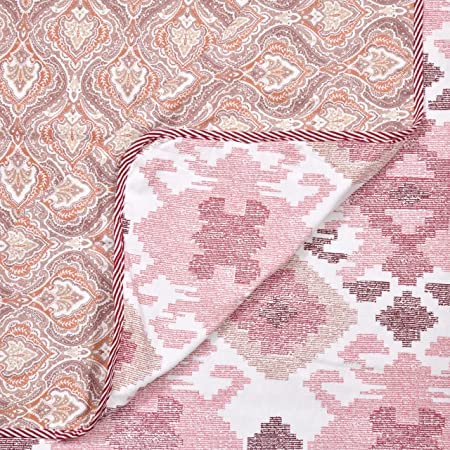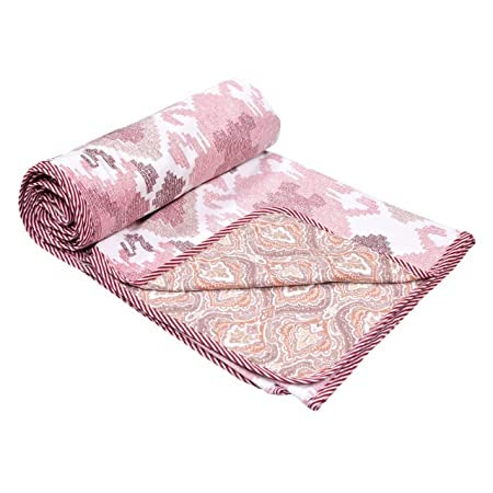 Package Contents: 1N of 100% Cotton Double Dohar . Size : 80 x 94 inches | 2.03 x 2.38 meters which is Ideal For Double Bed.Soft and Cosy fabric: This traditional body cover will keep you cosy and cool with its 60 yarn high count 100% cotton fabric on top and reverse with 100% cotton soft flannel inside Block Print Designs: The traditional prints on the Dohars have been taken from the designs of the traditional Hand Blocks and automated. The designs encompass ethnic motifs of plants, floral, traditional, geometrical or modern abstract designs. The colours used are environment friendly and pleasing to the eye. Reversible Design: MITUL HOME FASHION dohar provides you optimal comfort and adds elegance to your room decor with its reversible design – Attractive Designs on Both Sides. Trance dohars have same fabric edging/piping, which gives trance dohars has its own uniqueness for an elegant look and feel. Various Uses: Ideal for Summers , Mild Winters and As AC Blankets. The Unique Light Weight features makes this a Perfect Essesntial as A body cover / Blanket for Travellers , Out Door Camping and Trekking. This Awsome Product is a Perfect Birthday Gift , Friendly – House Warming and Corporate Gifting. vailable in Single, Double and also For Baby Sizes, Find on Amazon with MITUL Home Fashion Linen Baby Dohars . CARE: Machine wash / hand wash with cold water separately, tumble dry on low temperature. Do not use bleach, Use mild Detergents only. The double bed size dohar will have a joint as fabric width is restricted. There might be minor color contrast variation due photographic lighting and viewing display.
