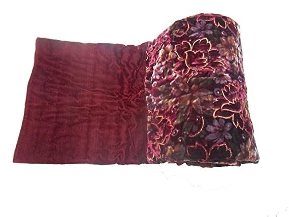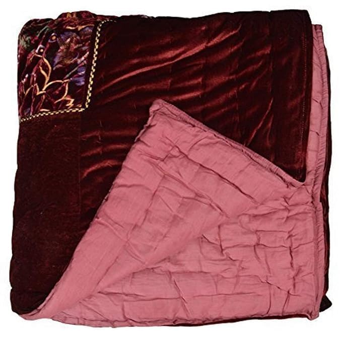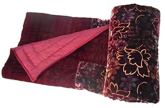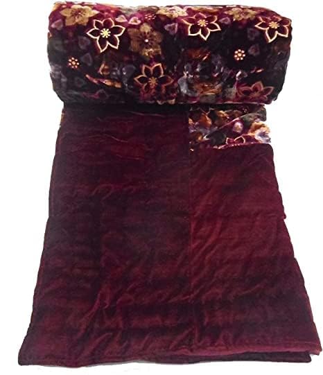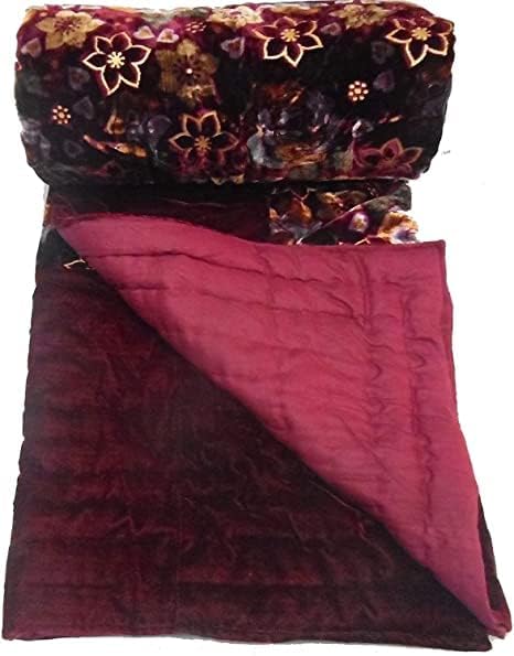 MITUL Home Fashion Rajasthani Jaipuri Floral Print Double Bed Velvet Quilt/Rajai (Maroon Velvet RAZAI, Double Bed)