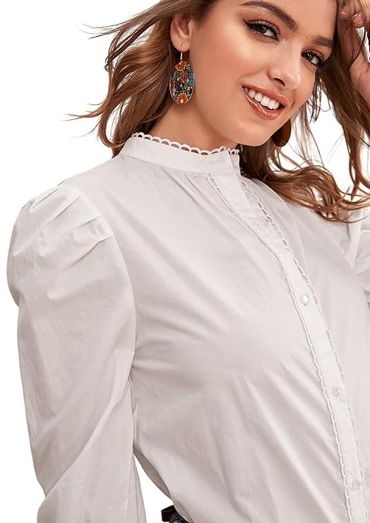 Discover timeless elegance with our beautifully crafted white blouse featuring delicate lace details and puff sleeves.
