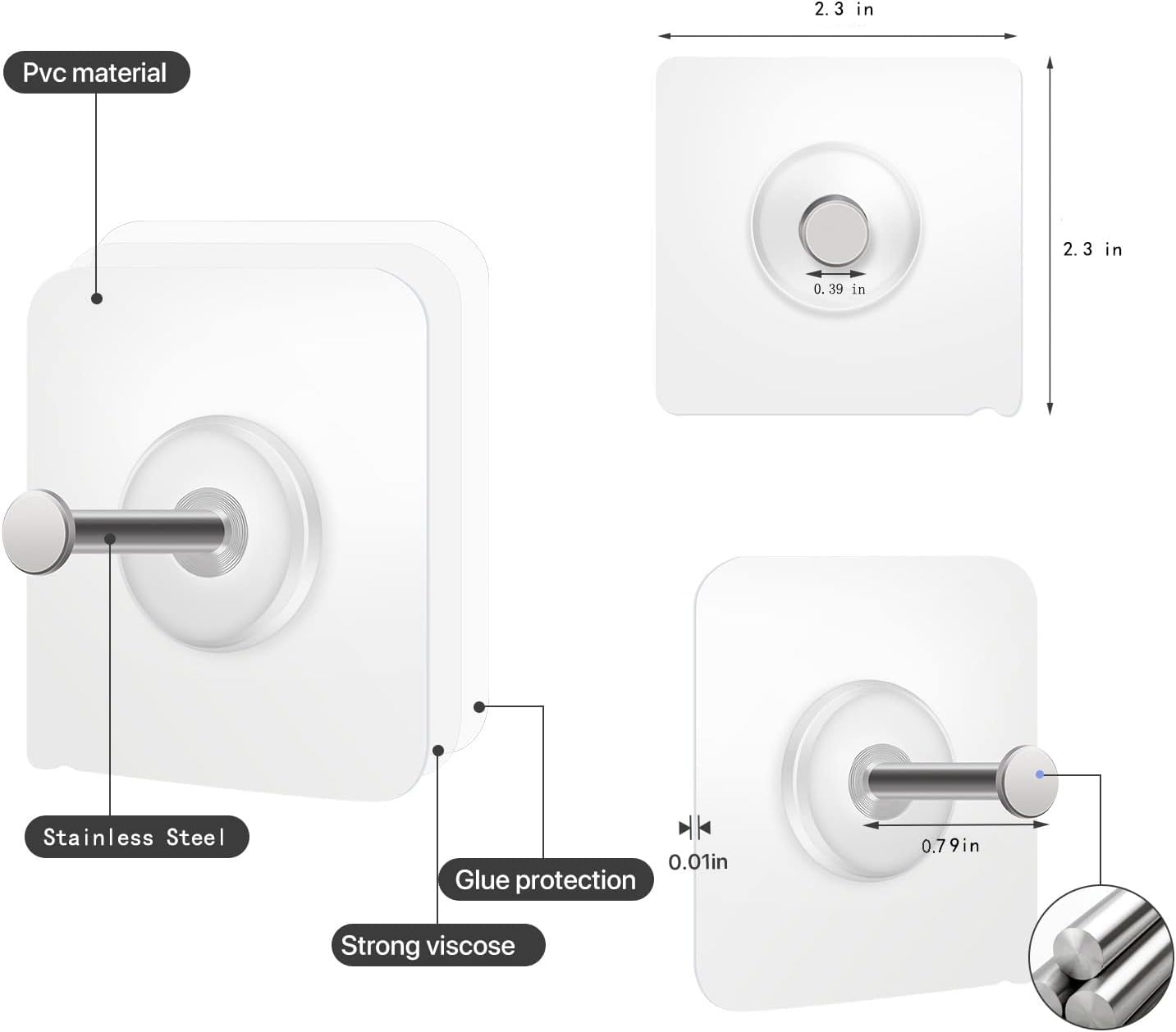 There Is No Need To Drill Holes Or Any Nails. Simply Peel Off The Film On The Back Of The Screw-free Sticker And Stick It To A Smooth Wall. Will Not Damage The Wall Or Leave Any Marks. Sticky Hooks For Wall Heavy Duty, Stick Hooks On Wall Strong And Self Adhesive Hooks Heavy Duty.
