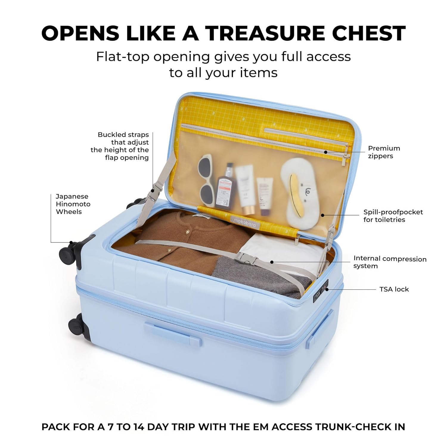 Meet the Em Access Check-in. We designed it to open like a treasure chest, so you’d get more floor space while packing (and unpacking). Perfect when you’re city-hopping during the day, and spending your nights in tiny hotel rooms.