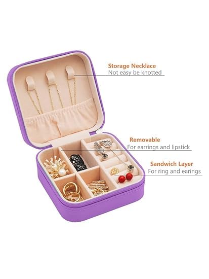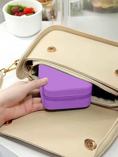 morel MINI JEWELRY TRAVEL CASE, PU LEATHER ORGANIZER BOX, SMALL PORTABLE JEWELLERY STORAGE HOLDER FOR WOMENS RINGS EARRINGS NECKLACES BRACELETS. PURPLE COLOUR (1PCS PURPLE)